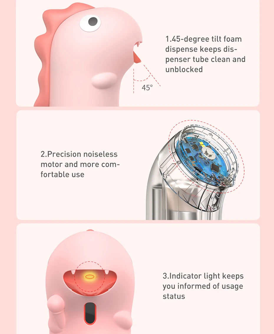 Пусть ваши дети влюбятся в мытье рук Волшебные пузырьки, тянущиеся руки в пену, чистые и гигиеничные, милый стиль Забавные цвета, привлекательный вид Вдохновляет, чтобы вызвать у детей интерес Без контакта, предотвращает перекрестное Автоматический пенораспылитель без касания, не требует нажатия. 4-5 см в ближней зоне индукции, 0,25 s быстрое пеной, двух-шестерни регулировка пены Сделать мытье рук веселой активностью Меньше плача больше удовольствия Вымойте 99% микробов Дополнительное покрытие поролонового мыла помогает держать руки красивыми и чистыми Безопасный анти-, ешьте с душевным спокойствием Содержит MI и другие ингредиенты ключ для эффективного мытья Распределяет фиксированное количество каждый раз, один спрей на одной стирке Только правильное количество пены-не слишком мало, не слишком много Увеличенная диафрагма, легко заменить Замените дезинфицирующее средство для рук с дефектом пены по желанию Двухступенчатое вспенивание, идеально подходит для мамы и папы Подходит для всех брендов пены дезинфицирующее средство для рук