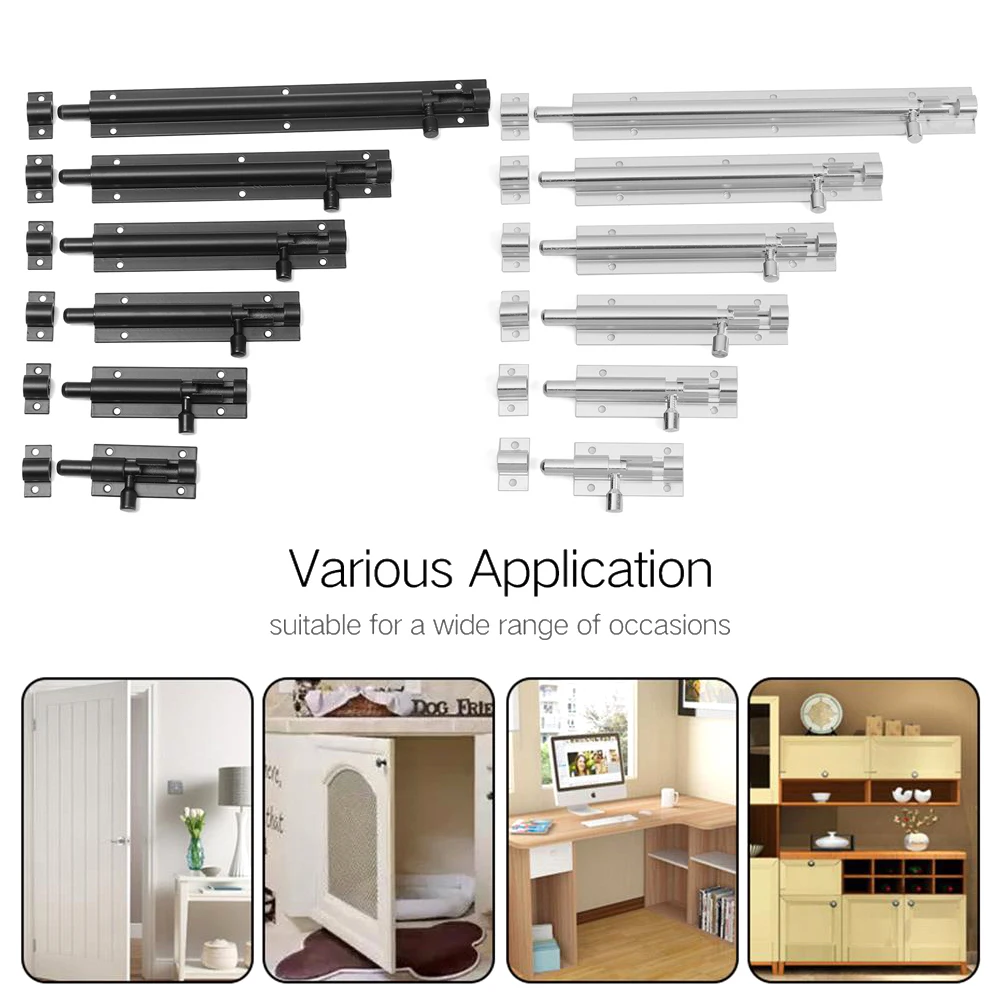 Черный, серебристый цвет баррель болт 2/3/4/5/6/8 дюймов Алюминий сплава дверные защелки оборудования для дома аппаратные средства ворота Безопасность стержень автомобильной двери защелка замка