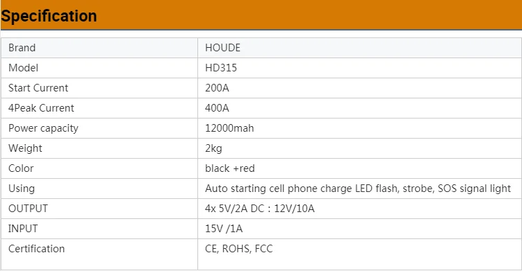 1. Старт мертвых батарей-безопасно Перейти начать мертвый аккумулятор в считанные секунды с этим компактным, но мощным, 12000 мАч портативный литиевый автомобильный аккумулятор стартовый пакет-до 20 прыжков начинается с одной зарядки-и запускается 12 В бензин до 5 л и дизельный автомобиль, начинающий до 2л. 2.UltraSafe-безопасный и простой в использовании автомобильный аккумулятор стартовый пакет без беспокойства о неправильных соединениях или искрах. Безопасное подключение к автомобильному аккумулятору any12volt с нашей защитой от ошибок и технологией защиты от искры и обратной полярности. 3. Многофункциональность-это автомобильный стартер, портативный внешний аккумулятор и светодиодный фонарик. Заряжайте смартфоны, планшеты и другие usb-устройства. Легко заряжается в течение 4-6 часов. Кроме того, он поставляется с светодиодный фонариком, включая аварийный стробоскоп и SOS. 4. Усовершенствованный дизайн-наш самый продвинутый портативный автомобильный стартер с аккумулятором когда-либо. Благодаря высокоразрядной литиевой технологии для безопасной работы в любом климате. Ультра-компактный и легкий дизайн весом всего 2 кг. 5.HD315 UltraSafe портативный литиевый автомобильный стартовый аккумулятор, сверхмощные зажимы для батарей, автомобильное зарядное устройство 12 Вольт, зарядный кабель Micro USB, сумка для хранения из микрофибры, руководство пользователя, гарантия 1 год!