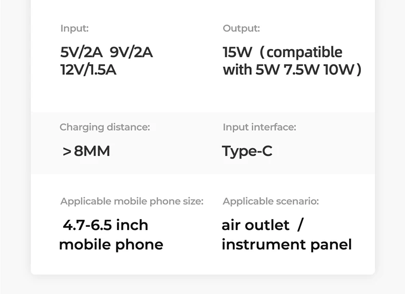50% увеличение скорости зарядки Национальный стандарт 15wQi стандарт быстрой зарядки --- Высокая мощность 15 Вт --- Электрическая индукция --- Управление одной рукой --- Безопасная блокировка