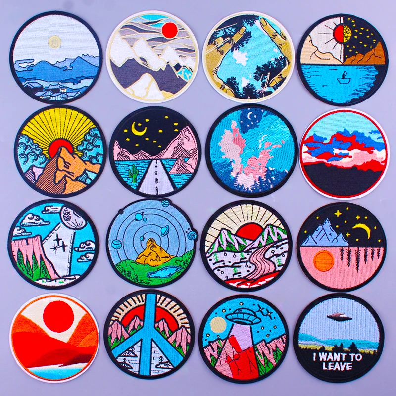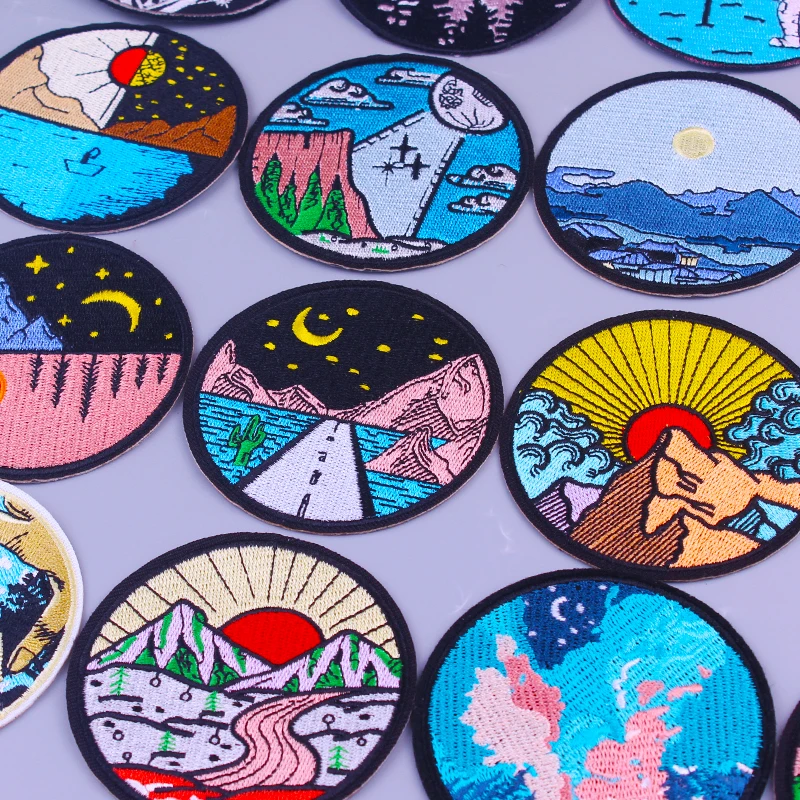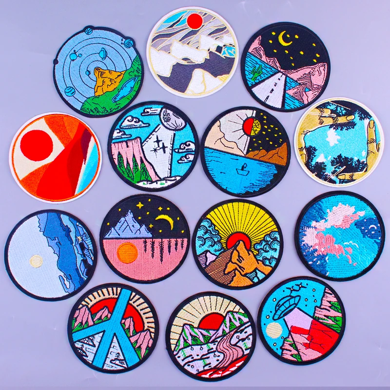 Горный Солнечный Звездный ночной патч, вышитые патчи для одежды, приключения, Отдых на природе, утюжок на заплатках для одежды, аппликация DIY