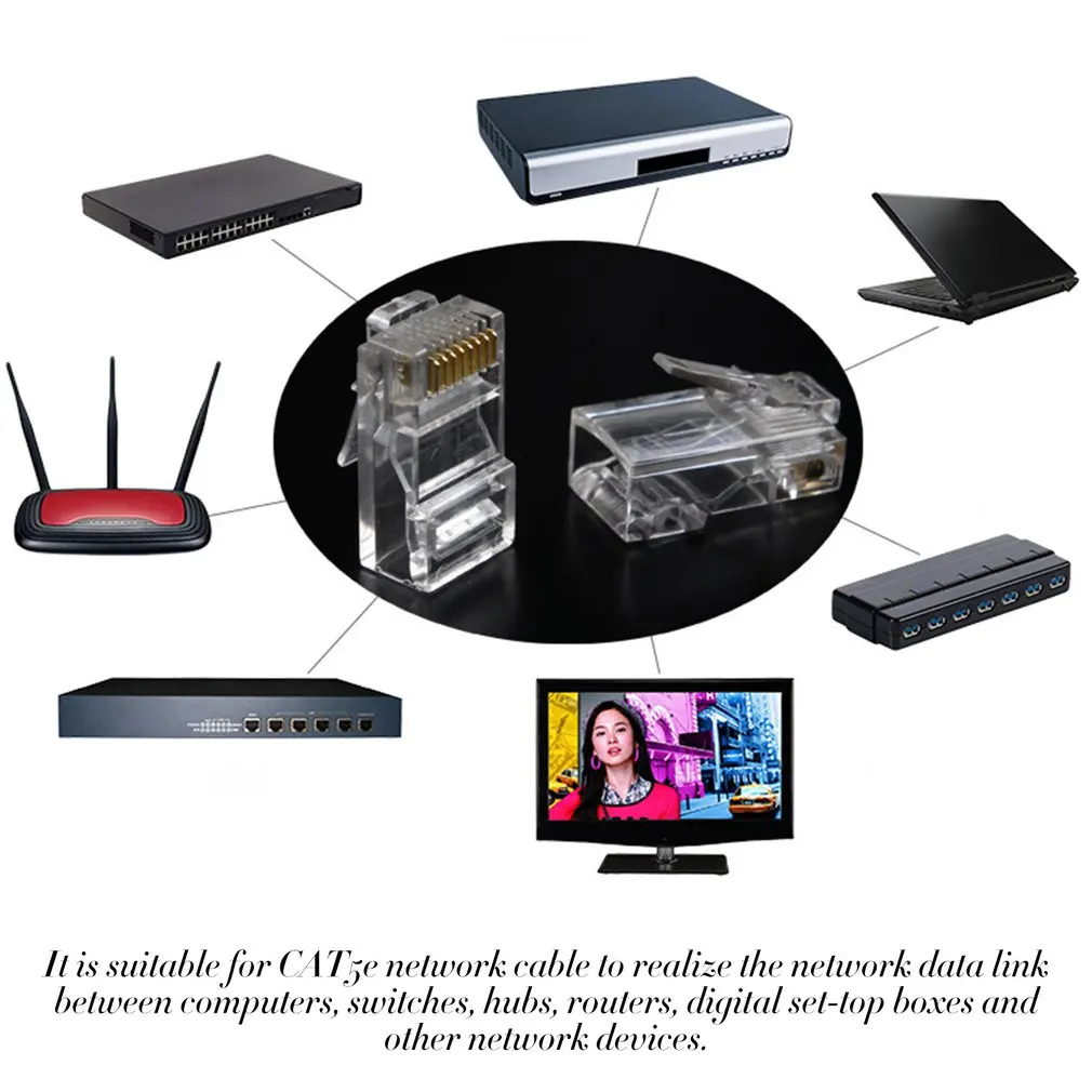 100 шт. кабельный терминал прозрачная кристальная головка 20 шт. кристальная головка RJ45 CAT5 CAT5E модульная вилка позолоченный сетевой разъем