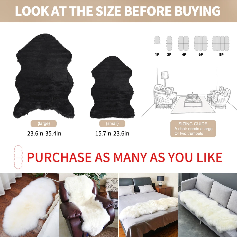 Содержимое коробки: 1 цветной искусственный ковер из овчины.