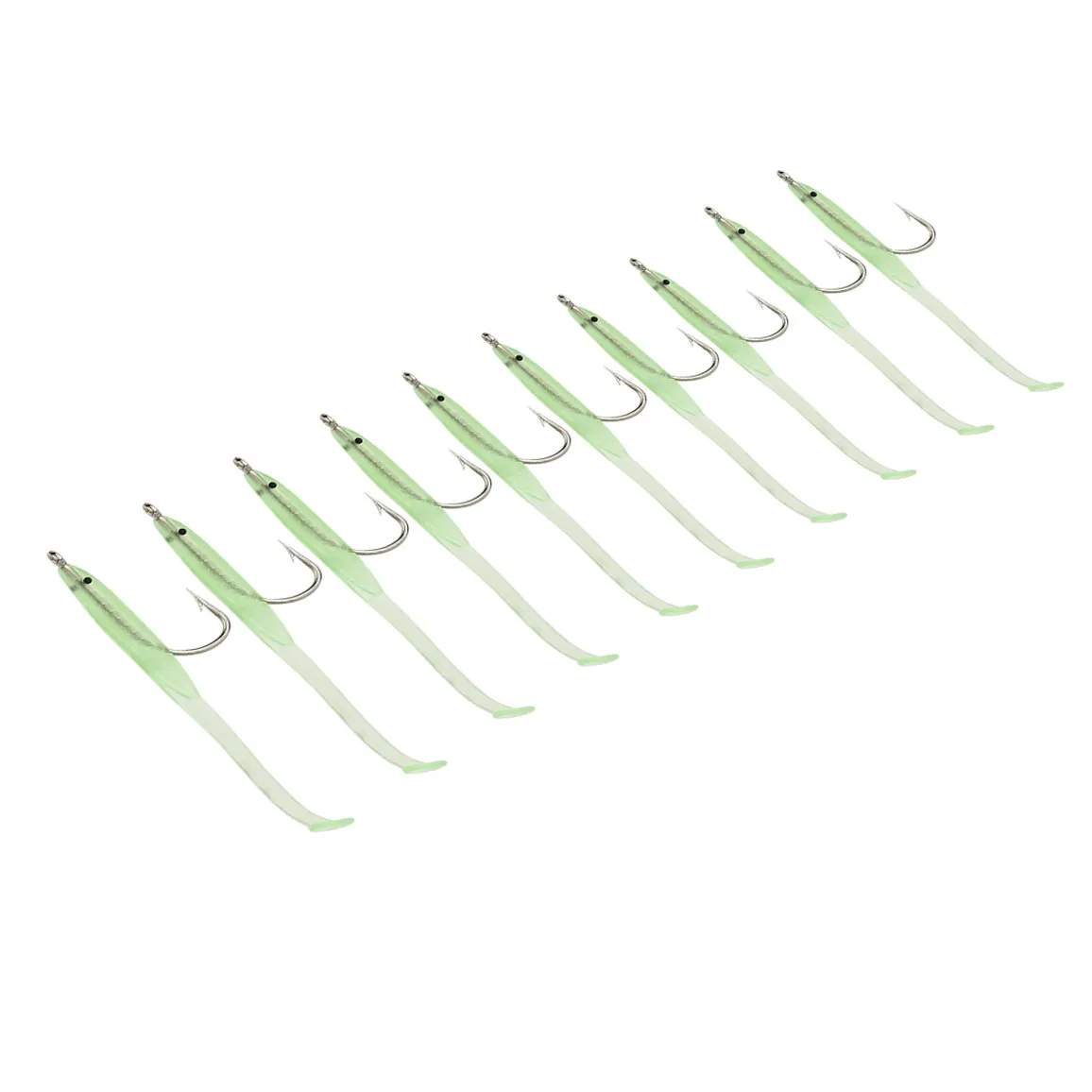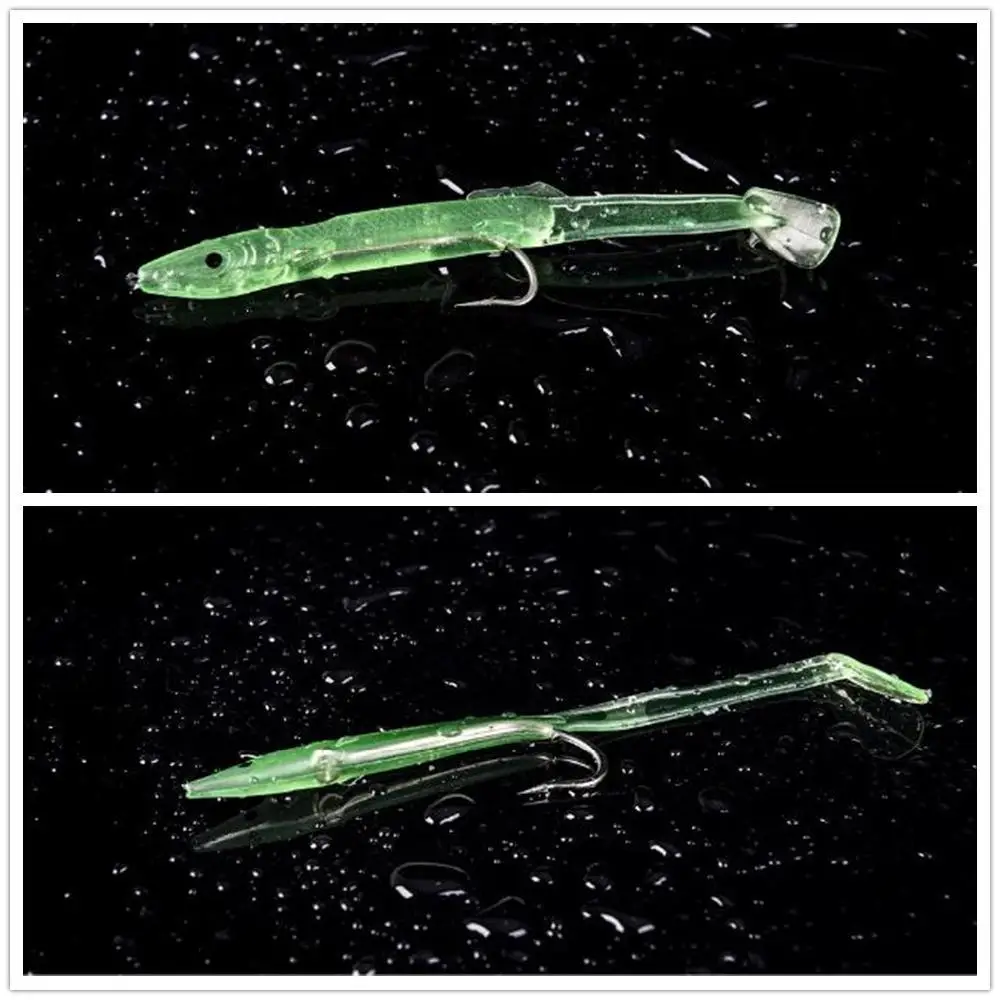 10 шт./лот, искусственные мягкие приманки, светящиеся приманки для рыбы, угря, с крючком, портативная свинцовая головка, червячный колючий крючок, однохвостовые приманки