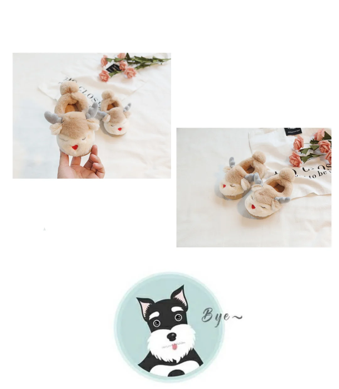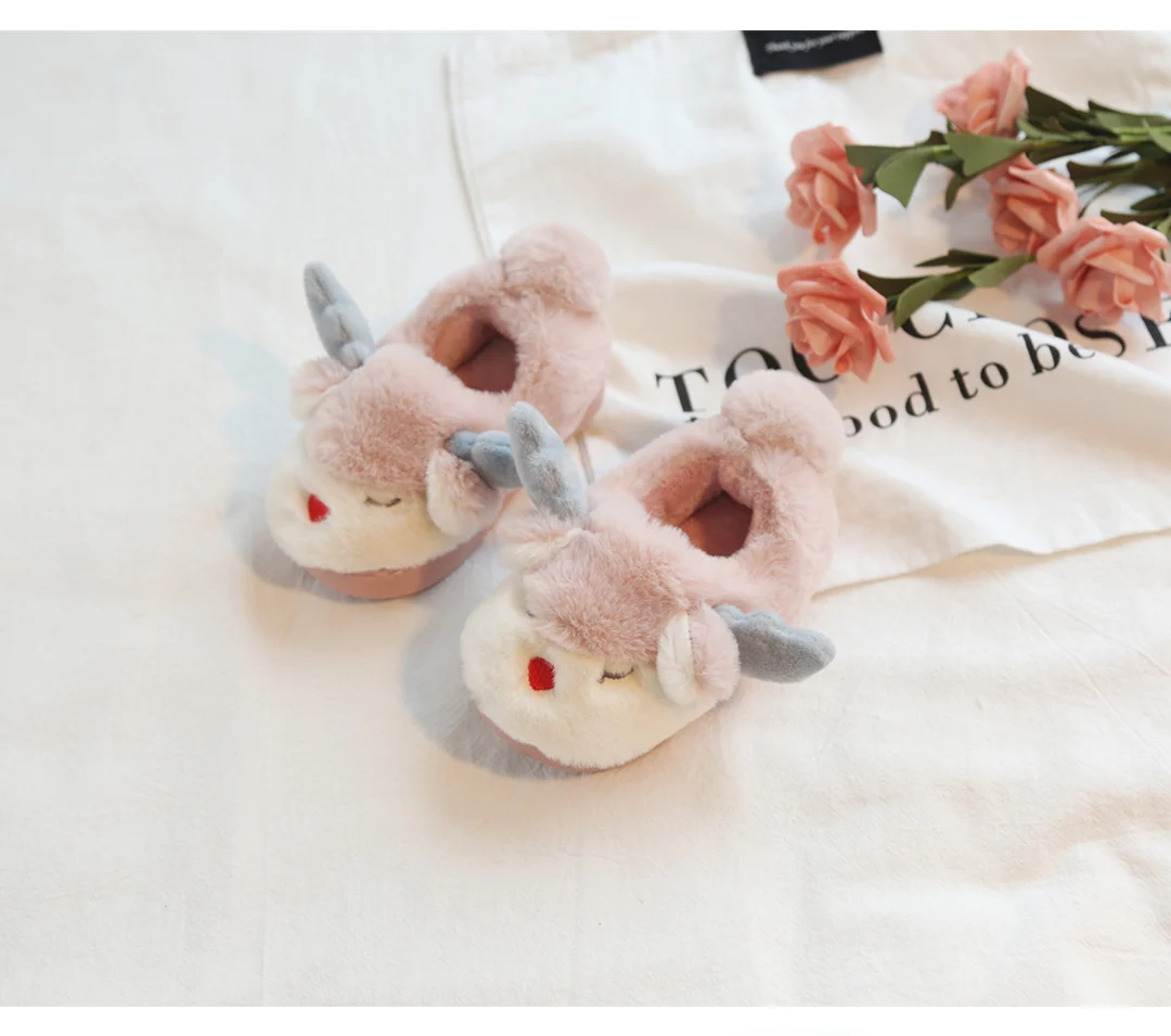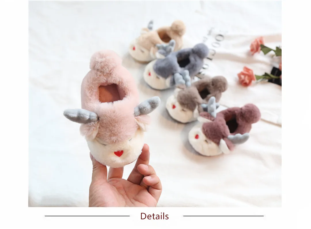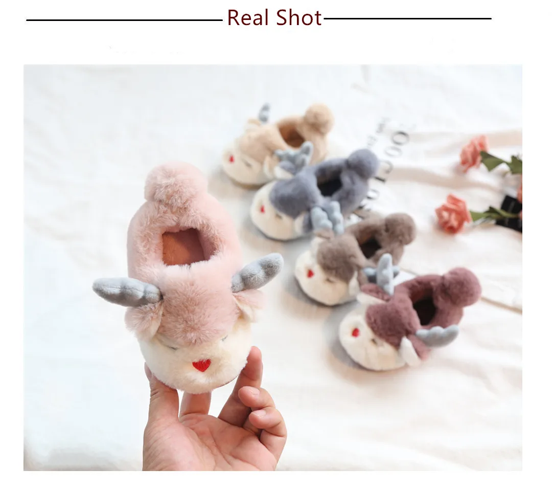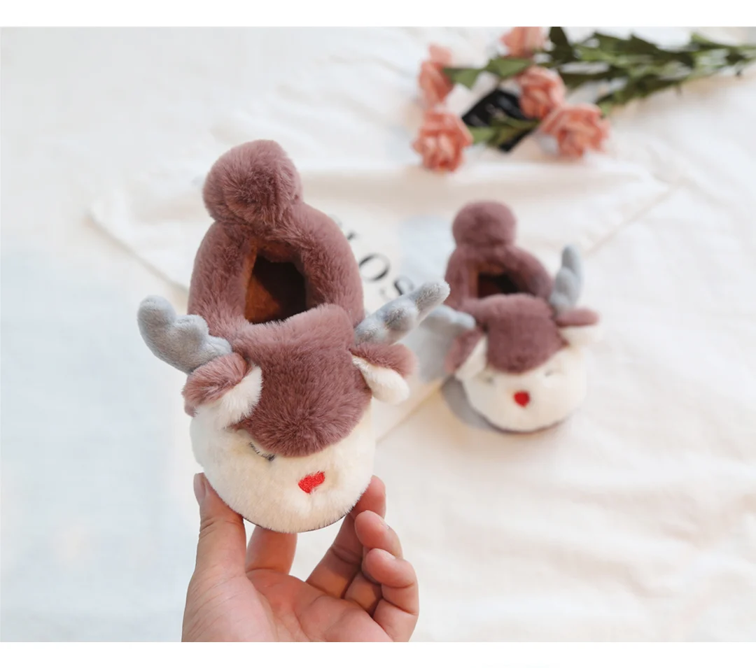 Детская обувь; Плюшевые тапочки; Нескользящие детские пушистые домашние тапочки с рождественским оленем; Детская зимняя мягкая подошва; Детская прогулочная обувь для малышей