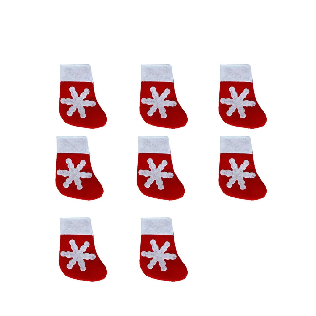 Милое украшение:Наши Мини рождественские носки Снежинка подставки для столовых приборов наряды праздничные подарки И лакомства в классическом рождественском стиле; Они могут быть наполнены чем угодно Вам нравятся столовые приборы, нож, ложка, вилка, конфеты, подарки; Они Удобный и красивый вид