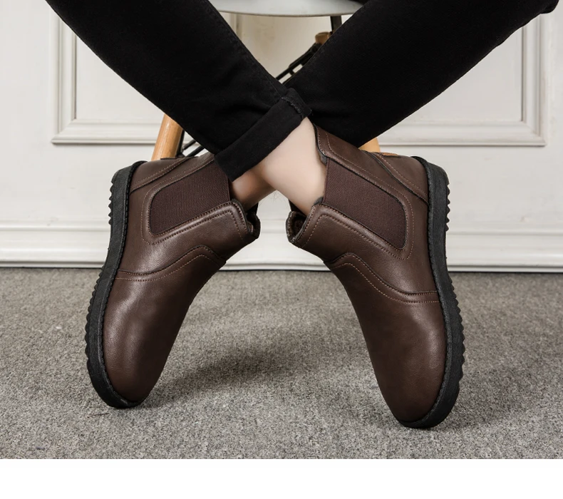 Классические модные брендовые мужские зимние ботинки из овечьей кожи; Зимние ботинки из овечьей шерсти с меховой подкладкой; Теплая водонепроницаемая обувь; Цвет коричневый