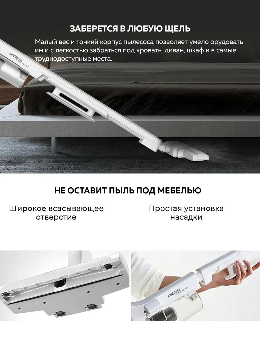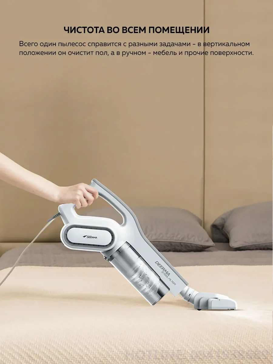 Xiaomi Deerma Suction Vacuum Cleaner DX700 — это ручной пылесос для быстрой и эффективной уборки. Он идеально подойдет для чистки напольного покрытия или ковров, а также может быть использован для мягкой мебели, постельных принадлежностей и салона авто. Модель обладает высокой мощностью всасывания и многоуровневой системой очистки.