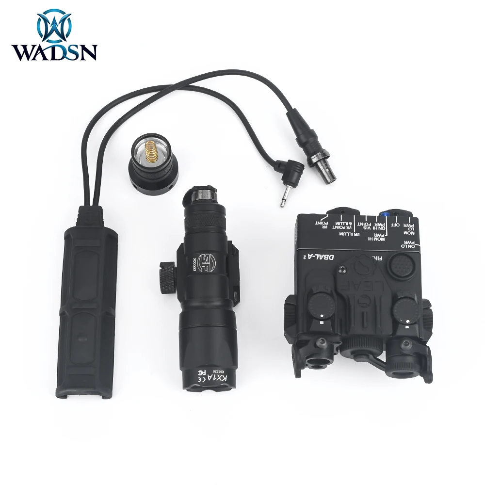 DBAL-A2 пустышка коробка без функциональной версии нет лазера нет белый светильник просто украшение Материал: Нейлон Пластик Packege: пустышка коробка + лист прицел + стикер M300A Скаут светильник 280 люменов Материал: алюминий анодированный Тип эмиттера: максимальный диапазон CREE-XPE-R5: 120 м Функция: Постоянный вкл/выкл Тип батареи: 1 * CR123A/1*16340 подходит для 20 мм Пикатинни железнодорожная посылка: m300A лампа + переключатель задней крышки + Кабель Реле давления Remeto двойной переключатель давления подходит для серии DBAL/PEQ & Scout светильник подходит для 20 мм Пикатинни Рельс
