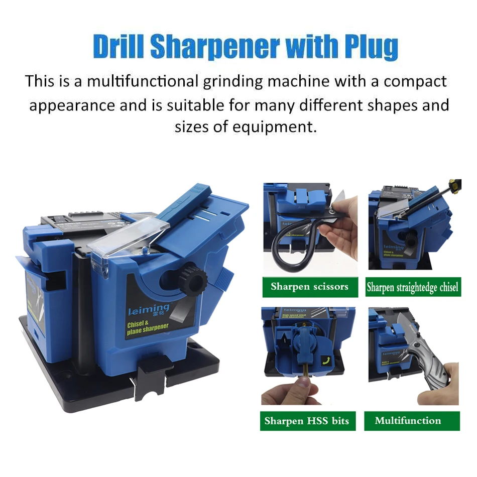 Подходит для начинающих семей, все виды инструментов для ремонта формы, регулируемый угол, ширина. Особенно подходит для начинающего грубого шлифовального станка, зубила, кухонного ножа, ножниц, сверла и т. д. Характеристики продукта: 1. Напряжение: 230-240 В (подходит для внутреннего стандартного напряжения) 110-130 в (подходит для внешнего стандартного напряжения) 2. Мощность/ток: 65 Вт 3. Скорость без нагрузки: 1350 об/мин 4. Самый большой диаметр шлифовального круга: Φ: 56 мм Эмери: 180 меш специальный тип шлифовального круга 5. Шлифованный Размер бит: Φ: 3 ~ 13 мм 6. Ширина шлифованного ножа: 6 ~ 51 мм, ширина ограничена, ширина съемного неограничена; Регулируемый угол режущей головки: 15 ~ 50 ° С сильным магнитом адсорбции 7. Вес нетто машины: 1,52 кг В-третьих, Конфигурация продукта: 1. Одна машина (картонная упаковка, руководство с схемой работы) 2. Набор аксессуаров для заточки 3. Набор шлифовальных бит
