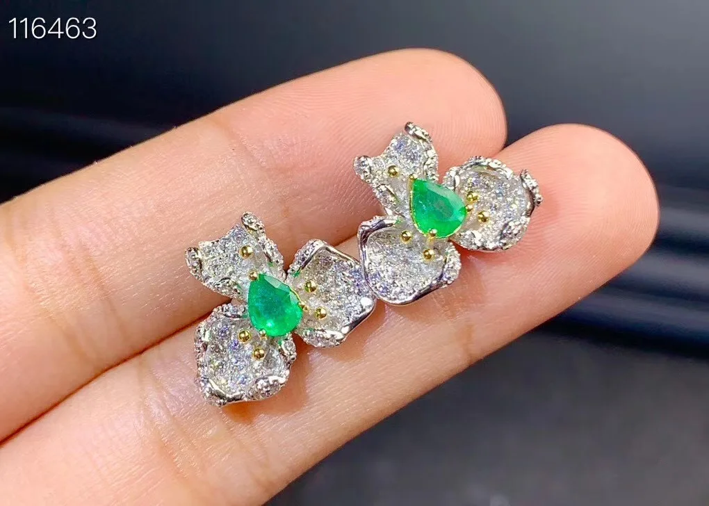 Новые серьги с натуральным изумрудом, серебро 925 пробы, два цвета, гальваническое покрытие, женские серьги, свежий и красивый дизайн, лучший подарок на выбор