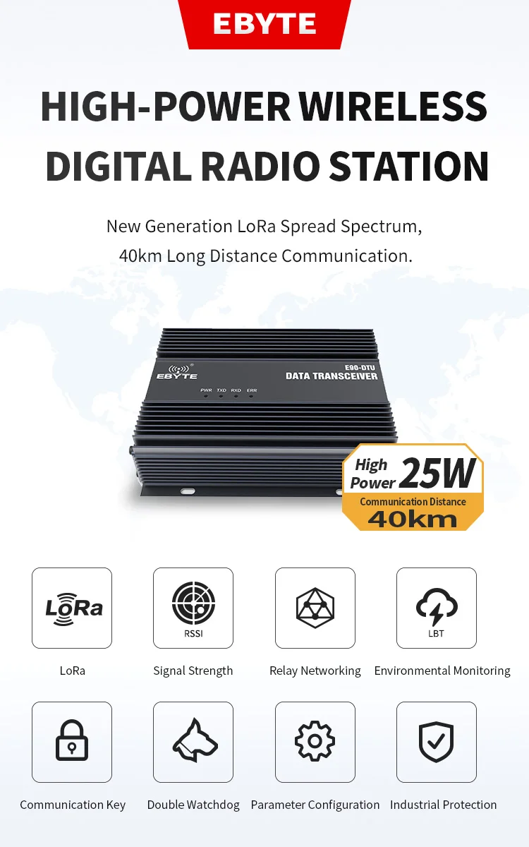 SX1268 Lora модем 433 МГц промышленный беспроводной трансивер для передачи данных 25 Вт 40 км Междугородная Высокая мощность Беспроводная Цифровая радиостанция