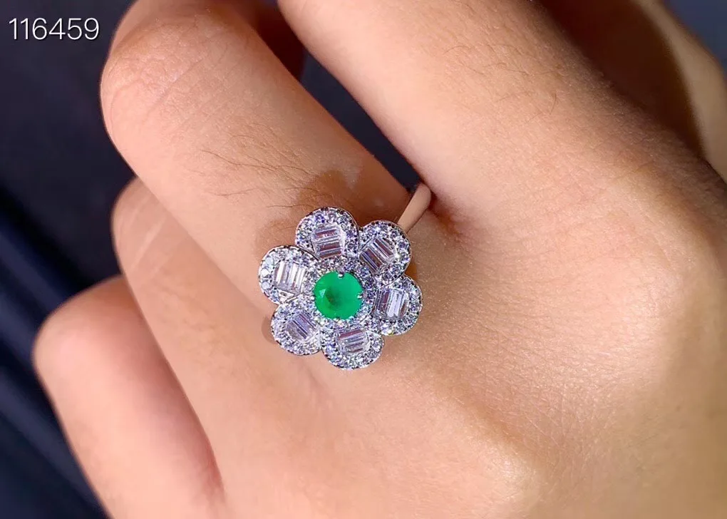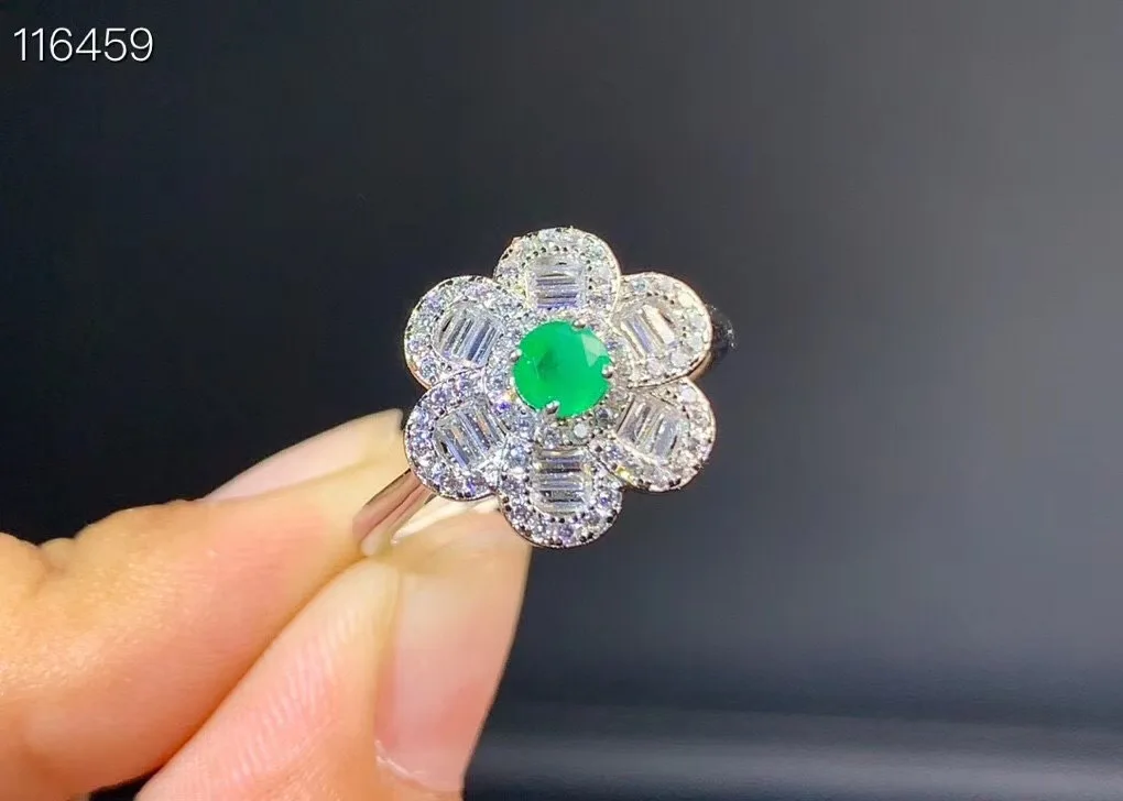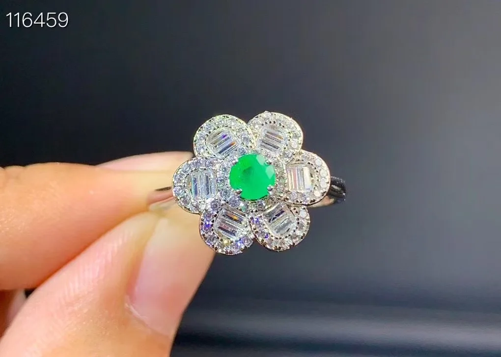 New natural emerald ring 925 silver women's ring fresh and lovely design style best gift choice