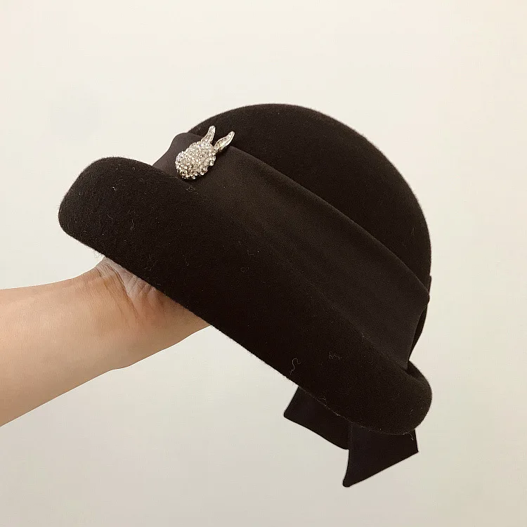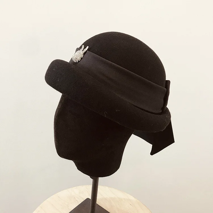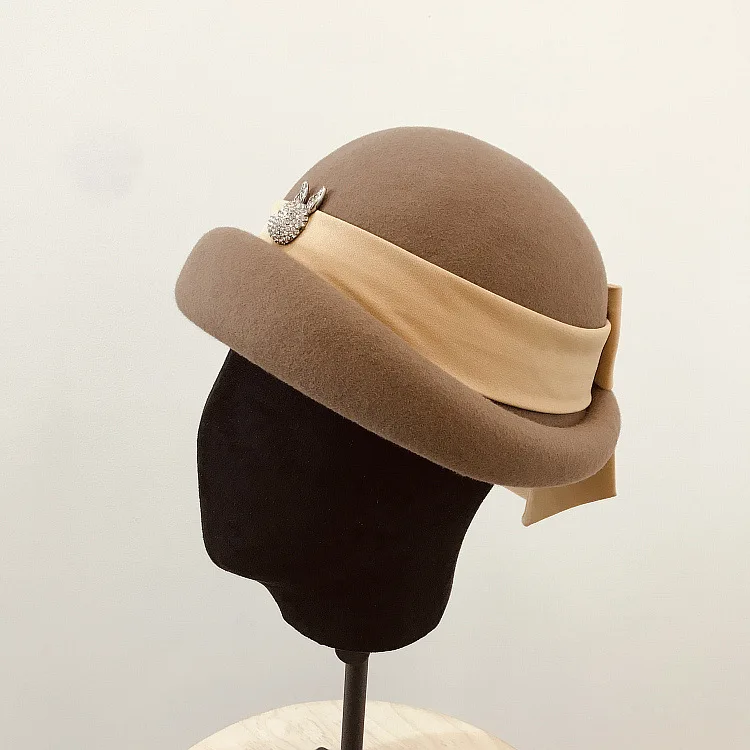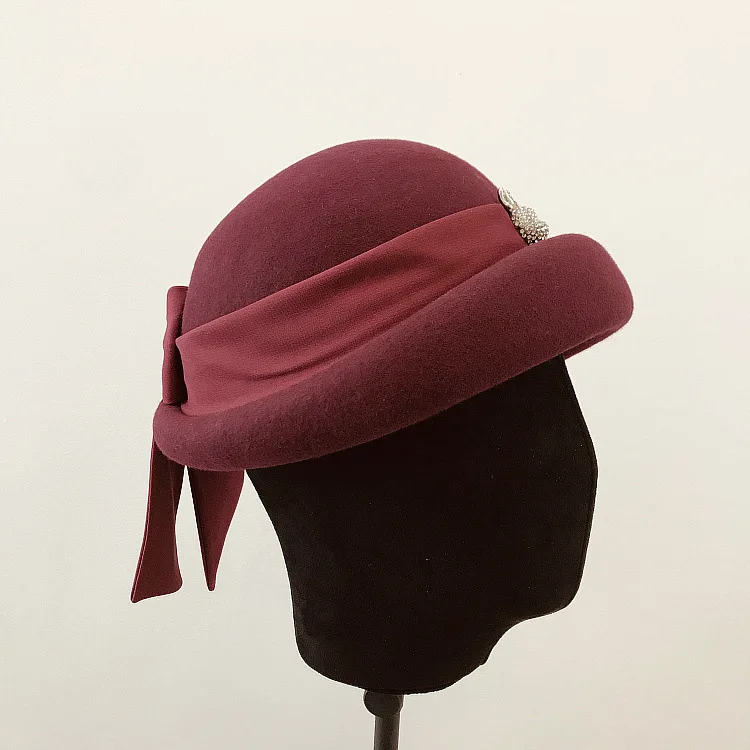 Модная шапка, элегантная женская фетровая шерстяная фетровая шляпа с бантом из ленты, цветочные официальные береты, фетровая шляпа для женщин, Зимняя