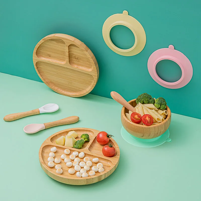 1 Набор для кормления ребенка чаша детская тарелка для обеда бамбуковая детская столовая утварь для кормления с силиконовой присоской бамбуковая ложка детская посуда