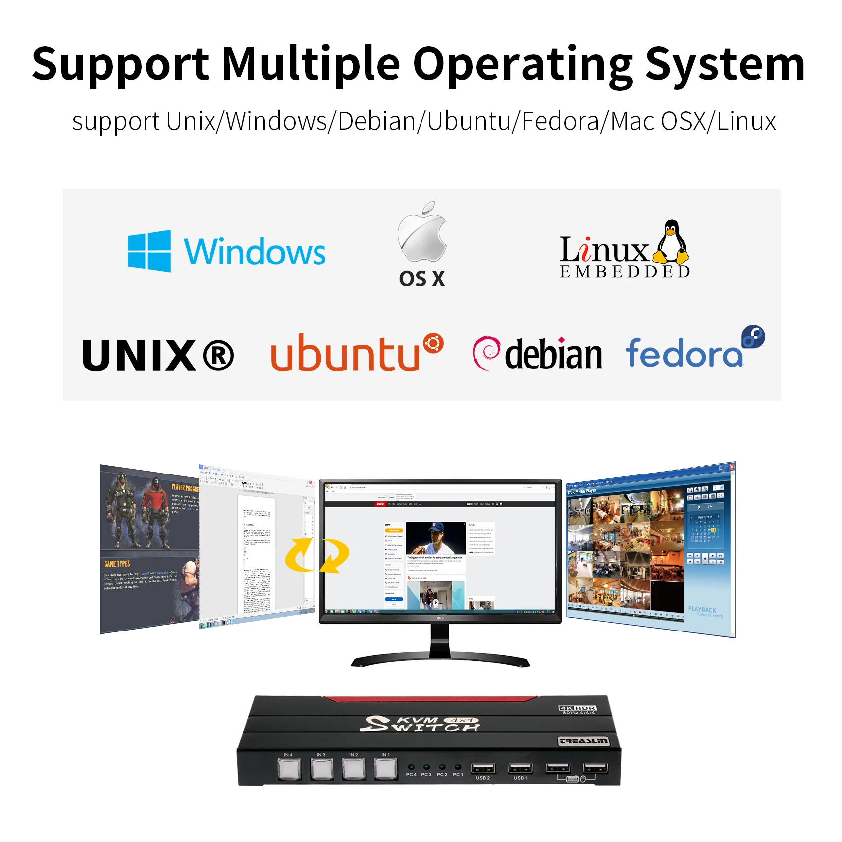 Пуля точка: 【 4 в 1 выход HDMI KVM переключатель 】легко реализовать одну клавиатуру, мышь и монитор могут управлять 4 компьютером (поддерживает Unix / Windows / Debian / Ubuntu / Fedora / Mac OS X Raspbian / Ubuntu для Raspberry Pi и других операционных систем на базе Linux. Вам не нужно перемещать свое положение, и вашей руке не нужно оставлять клавиатуру. Это значительно повысит эффективность вашей работы. Hdhdmi2.0 4:4:4 】 основной тренд HDMI2.0 улучшает Совместимость Полная поддержка 60 fps дисплей высокой скорости 4 раз 1080P, поддерживает HDR 10 и Dolby Vision, он может видеть каждую деталь на картинке и приносит вам лучший визуальный опыт. 【 Порт USB2.0 для удовлетворения различных требований 】поддерживает стандартный интерфейс usb 2,0, который может быть подключен к кодовому сканирующему пистолету, u-дискам, принтерам и другим обычным usb-устройствам и может быть переключен с портом. [Горячий ключ, многократное переключение] не нужно выключать kvm переключатель и хост компьютера, жесткий диск рекордер и другое оборудование, вы можете увеличить или уменьшить оборудование в любое время. Вы можете выбрать переключатель ключа канала по клавише на KVM панели или сразу выбрать ярлыки на клавиатуре для переключения [Применимые условия] это устройство переключателя подходит для строительных проектов, конференц-залов, игр, командной и контрольной комнаты, обучения и обучения, бизнес-обменных центров, торговых центров, игровых студий, видеоконференций, И школы и так далее