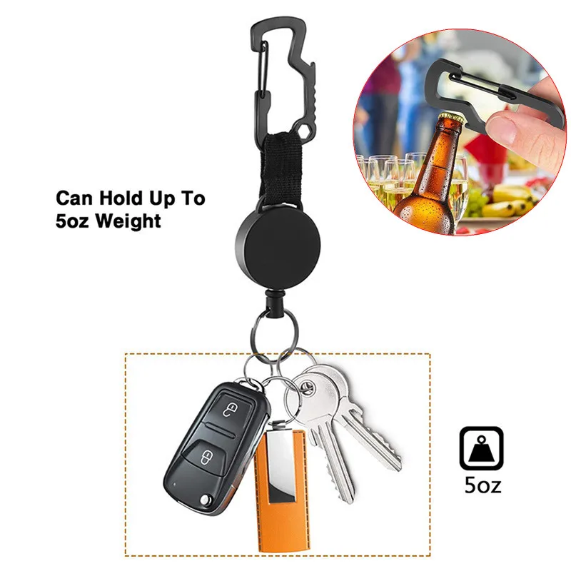 MULTI-PURPOSE - Upgraded hook Lets you attach not just keys & ID cards but also can be used as a bottle opener and wrench, very convenient for work and outdoor use.