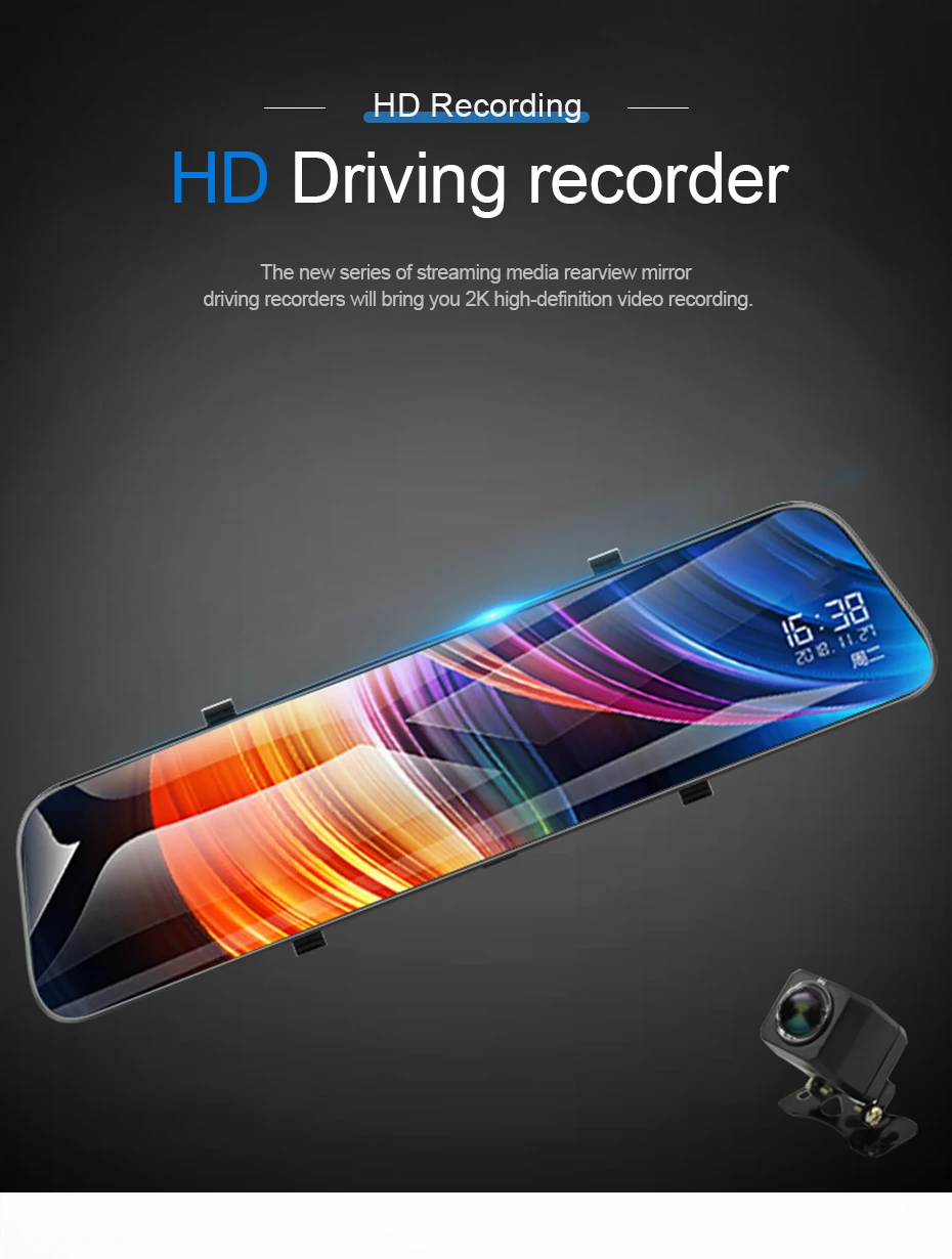 Автомобильный видеорегистратор, зеркальный видеорегистратор, Автомобильный видеорегистратор, 2K HD камера с двумя объективами, 1080P, передний и задний сенсорный экран, Android Dashcam, Wifi, GPS