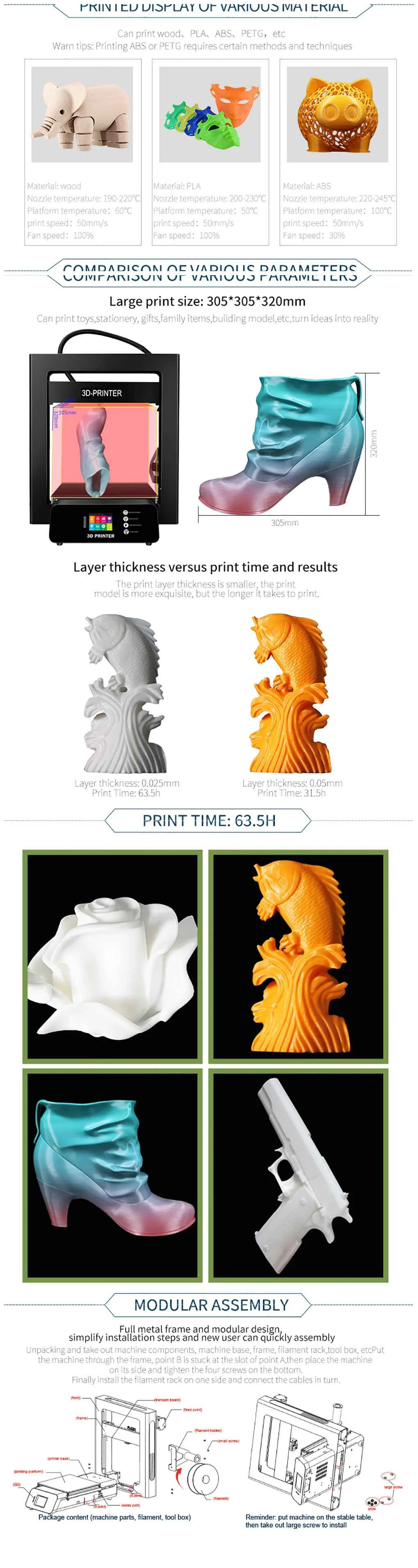 ● 305*305*320 мм размер печати, подходит для дома, школы и на рабочем месте.