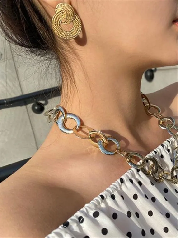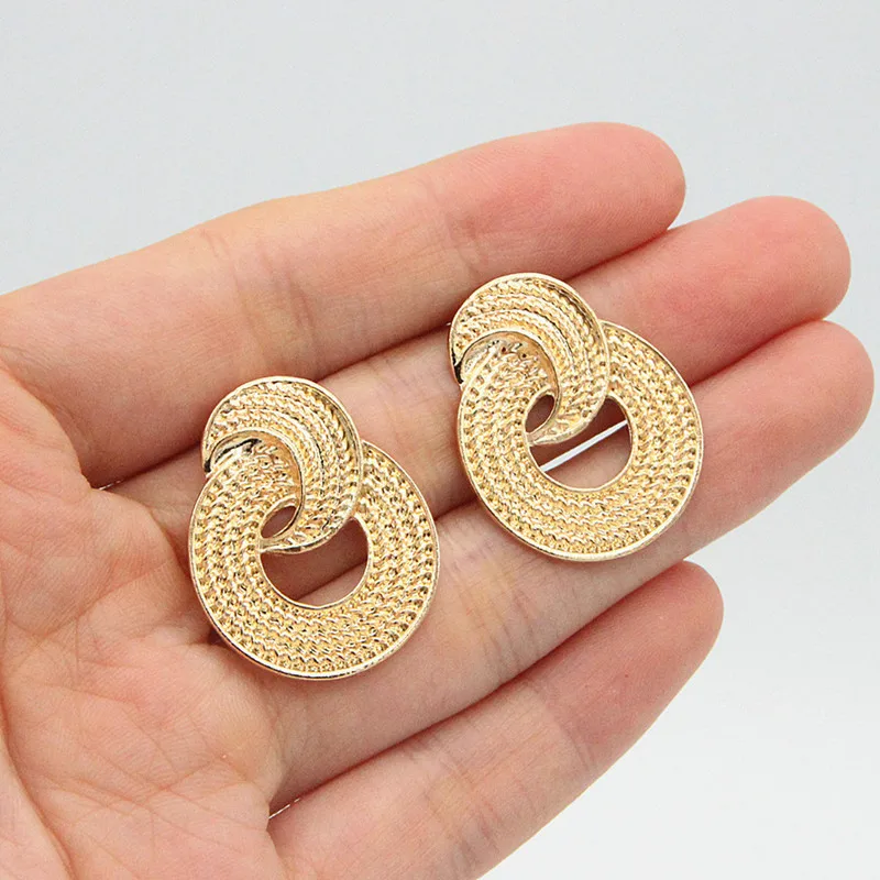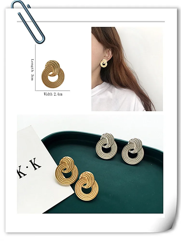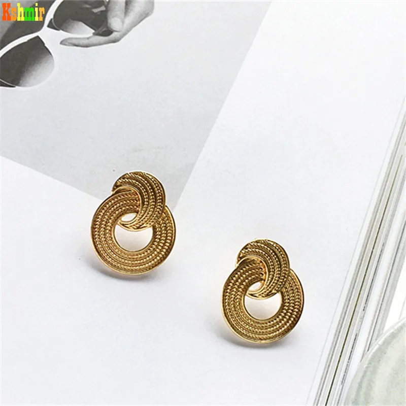 Kshmir Design threaded metallic gold earrings with geometric earrings that carve round simple jewelry2020