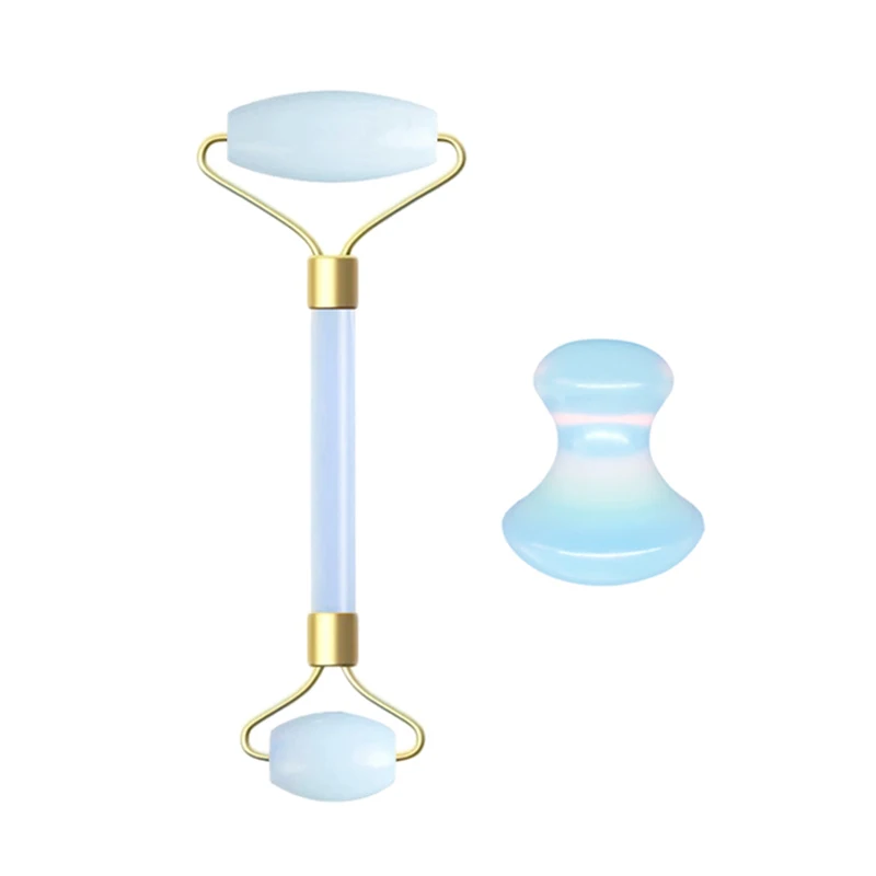 Роликовый скребок гуаша для массажа лица с натуральным опалом, гуашь в наборе, каменный ролик