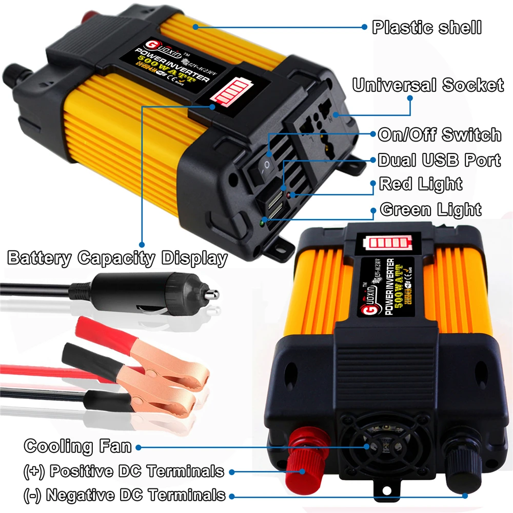 300W/500W DC12 для AC110/220V автомобильный Мощность инвертор светодиодный Дисплей синусоида преобразователь двойной интерфейс USB Напряжение трансформатор