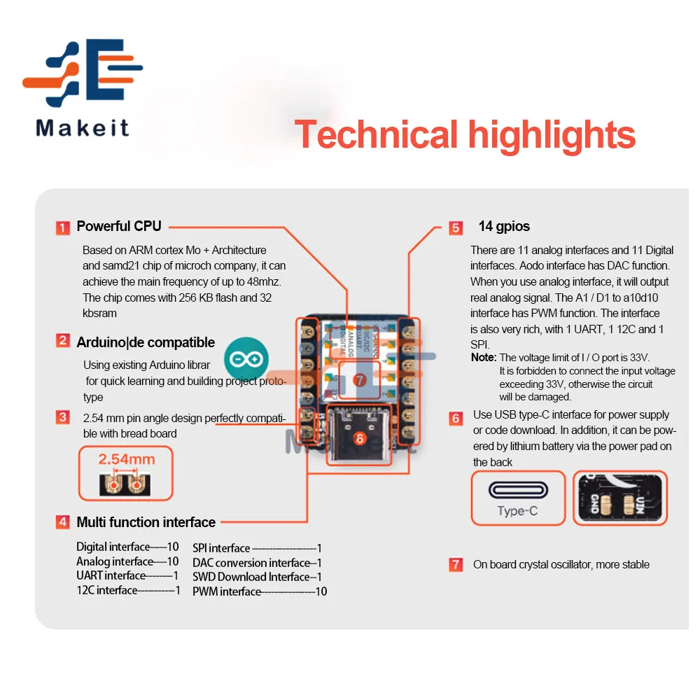 Отзывы о Макетный модуль микроконтроллера USB Type c Nano SAMD21 32 бит 48 МГц Cortex M0 XIAO для смарт часов