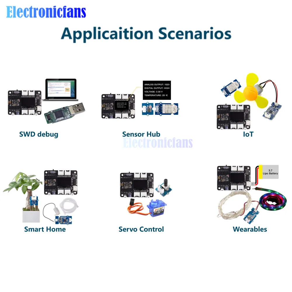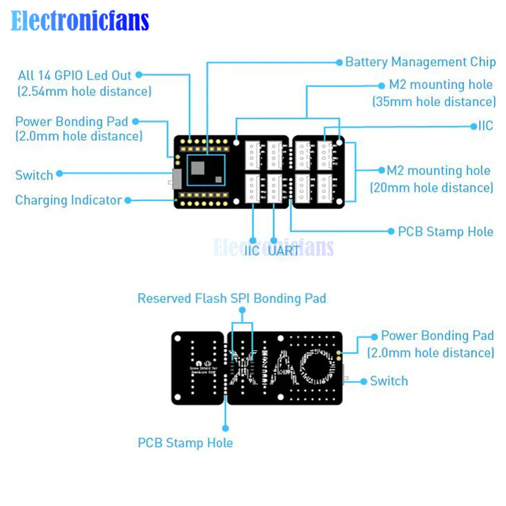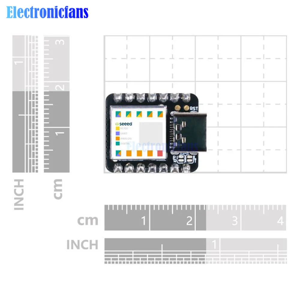 Спецификация:Процессор: ARM Cortex-M0 + CPU(SAMD21G18) работает до 48 МГцПамять: 256кб Flash, 32кб SRAMI/O контакты: 14 GPIO контакты, 11 аналоговых контактов, 11 цифровых контактов, 1 ЦАП выходИнтерфейс: 1 I2C интерфейс, 1 UART интерфейс, 1 SPI интерфейсИнтерфейс питания и загрузки: интерфейс USB Type-CСветодиодный s: 1 пользовательский светодиодный, 1 мощный светодиодный, два светодиодный s для загрузки последовательного портаКнопка сброса: две кнопки сброса короткое подключение для сбросаКолодки питания: для источника питания батареиСовместимость программного обеспечения: совместимость с Arduino IDEКрышка проекции для защиты цепиРазмеры: 20x17,5x3,5 ммТипичное применение:Носимые устройстваБыстрый прототип (непосредственно прикреплен к расширенной печатной плате как минимальная система)Идеально подходит для всех проектов, необходимых mini для ArduinoDIY клавиатураРазработка USB (USB к многоканальному TTL/USB хост-режиму и т. д.)Сценарий, в котором вам нужно прочитать несколько значений макета выхода DACSeeeduino XIAO (предварительно припаянный)Ключевые особенности:Мощный Процессор: микроконтроллер ARM® Cortex®-M0 + 32 бит 48 МГц (SAMD21G18) с 256 КБ флэш-памяти, 32 КБ SRAMГибкая Совместимость: совместимость с Arduino IDEПростота в эксплуатации: макет-дружественныйМаленький размер: как малые, так и для большого пальца (20x17,5 мм) для Носимых устройств и небольших проектов.Несколько интерфейсов разработки: 11 цифровых/аналоговых контактов, 10 PWM контактов, 1 DAC выход, 1 SWD интерфейс склеивания, 1 I2C интерфейс, 1 UART интерфейс, 1 SPI интерфейс.Описание:Взгляните на Seeeduino XIAO (предварительно припаянный). Какой маленький размер и мило смотрится! Это самый маленький член семьи Seeeduino. Seeeduino XIAO (предварительно спаянный) по-прежнему имеет мощный CPU-ARM® Cortex®-M0 +(SAMD21G18), который является микроконтроллером Arduino низкой мощности. С другой стороны, эта маленькая плата имеет хорошую производительность при обработке, но требует меньше энергии. На самом деле, он разработан в крошечном размере и используется для Носимых устройств Arduino и небольших проектов.Помимо сильного процессора, Seeeduino XIAO (предварительно припаянный) отлично подходит для многих других функций. Он имеет 14 контактов GPIO, который используется для 11 аналоговых контактов, 11 цифровых контактов, 1 интерфейс I2C, 1 интерфейс UART и 1 интерфейс SPI. Некоторые контакты имеют различные функции, булавки A1/D1 в A10/D10 имеют функции PWM, а Pin A0/D0 имеет функцию DAC, что означает, что вы можете получить настоящие аналоговые сигналы, а не PWM сигналы, когда вы определяете их как аналоговый pin, вот почему 14 контактов GPIO могут реализовывать больше контактов и интерфейсов ввода/вывода. Кроме того, Seeeduino XIAO (предварительно припаянный) поддерживает интерфейс USB Type-C, который может поставить питание и загрузить код. В задней части XIAO есть подушечки питания, которые поддерживают батарею и делают ее пригодной для носки, чтобы стать реалистичной. За исключением светодиодный индикатор питания, мы добавляем пользователя светодиодный на борту для вашего лучшего опыта кодирования. Обычно дев. Плата такая маленькая, как этот размер будет использовать внутренний кристаллический осциллятор чипа для фиксации времени, чтобы сделать часы более точными, Seeeduino XIAO (предварительно спаянные) макеты дополнительно 32,768 кГц, чтобы сделать часы более стабильными.Seeeduino XIAO (предварительно припаянный) Идеально совместим с Arduino IDE, вы можете лег