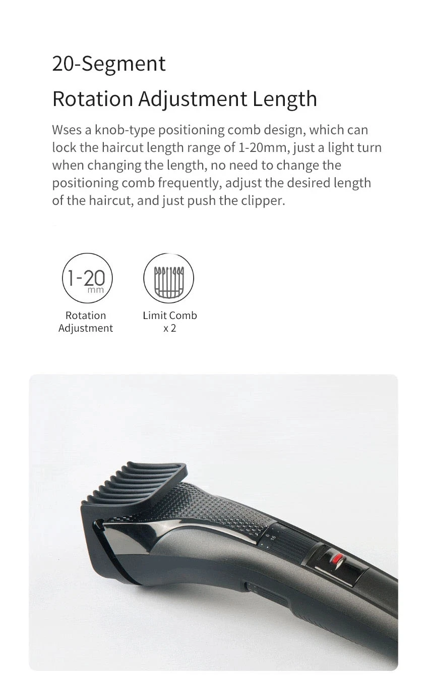 -Подходит для всех Ребенок, молодые люди, старики могут использовать его, позволит вам больше не беспокоиться о стрижках и легко придать удовлетворительную форму. -Мощная мощность 7300 об/мин Оснащен мотором из серебристого сплава 300, с мощной мощностью 7300 об/мин и интеллектуальной системой ESM с защитой от карт, которая обеспечивает чрезвычайно плавный опыт. Легко справляется с разнообразными волосами и быстрее стрижет волосы. -Режущая головка из сплава, не тускнеет после длительного использования Высокая абразивная стойкость, высокая прочность, легко отрезать медную проволоку, режущая головка будет автоматически измельчена, не беспокойтесь о том, чтобы сделать режущую головку тупой из-за длительного использования. -R-Shaped обработка филе Обеспечить безопасность и комфорт процесса стрижки безопасный контакт с режущей головкой под любым углом, без опасности. -20 в поп упаковке, регулировка вращения Длина Wses расческа для позиционирования типа ручки, которая может блокировать Длину стрижки в диапазоне 1-20 мм, просто светильник поворачивается при смене длины, не нужно часто менять расческу позиционирования, отрегулируйте желаемую длину стрижки и просто нажмите на клипер.