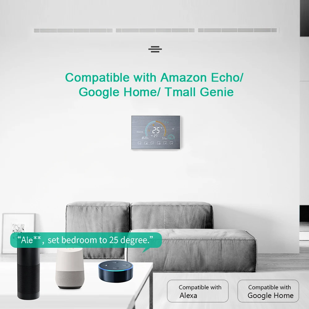 Нет ограничений для добавления термостатов в приложение. Интегрирован с Amazon Echo, Google Home и Tmall Genie.