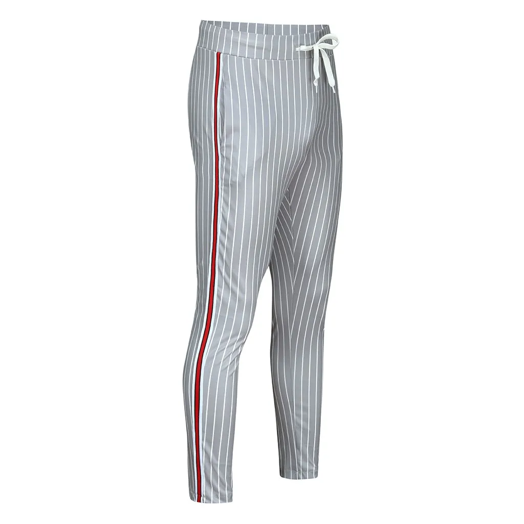 Мужские беговые полосатые Лоскутные Повседневные на шнурке Спортивные брюки, длинные брюки