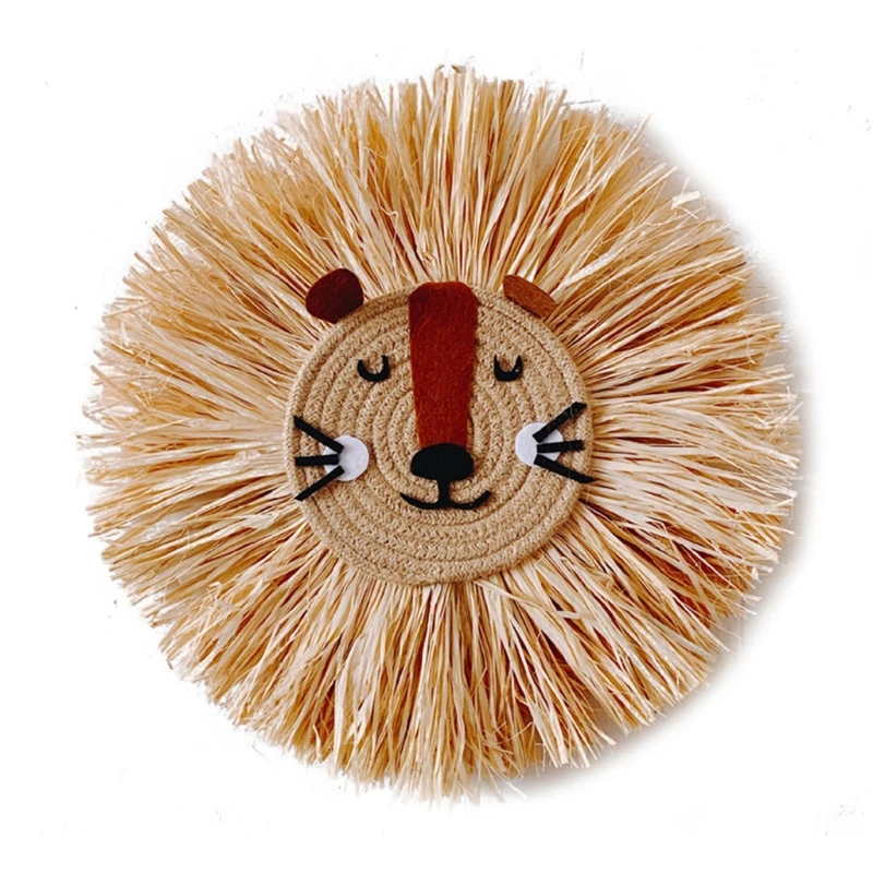 Мультфильм Лев висячие украшения хлопок Нить Ткачество голова животного настенное украшение