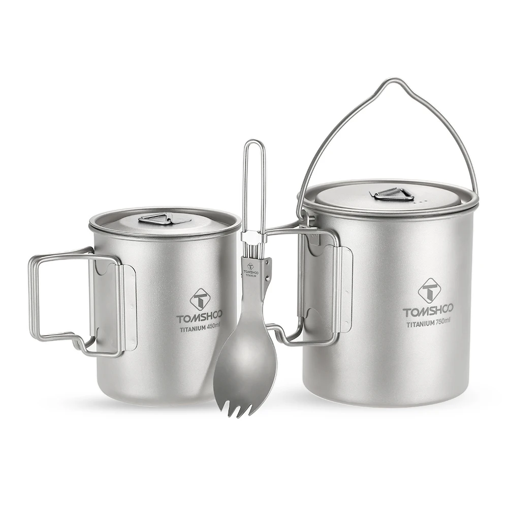 Комплект из 3 предметов: полный титановый набор включает в себя горшок объемом 750 мл, чашку объемом 450 мл и складная ложка-вилка, отлично подходит для кемпинга, пеших прогулок, альпинизма, приключений на открытом воздухе и выживания.