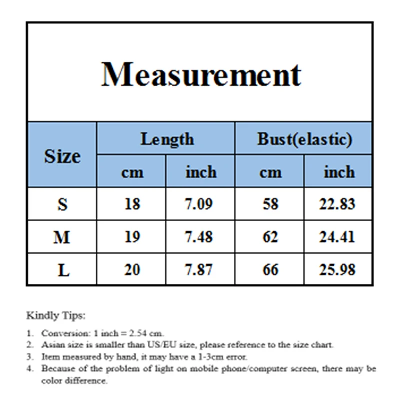 M: Длина около 19 см, обхват груди около 62 см (гибкий), погрешность около 3 см