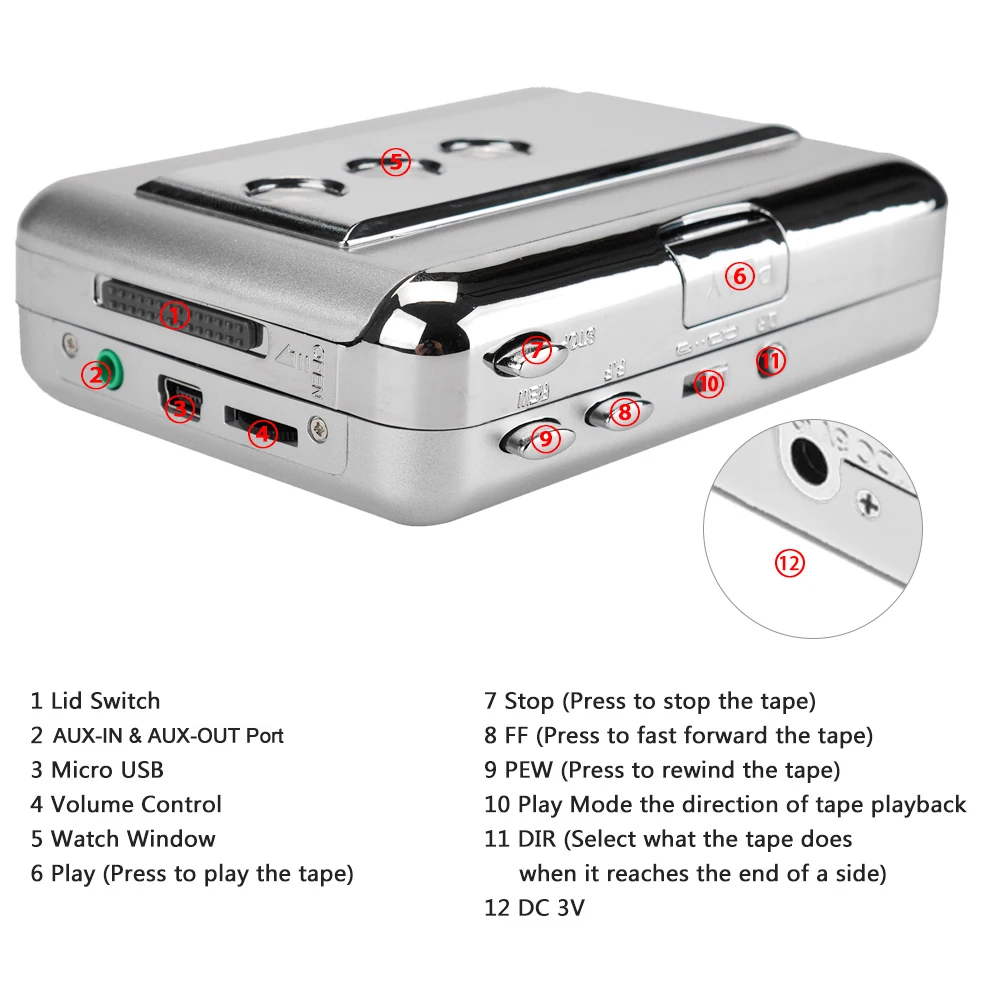 USB Cassette Capture-это портативный usb-проигрыватель, работающий со всеми видами лент.