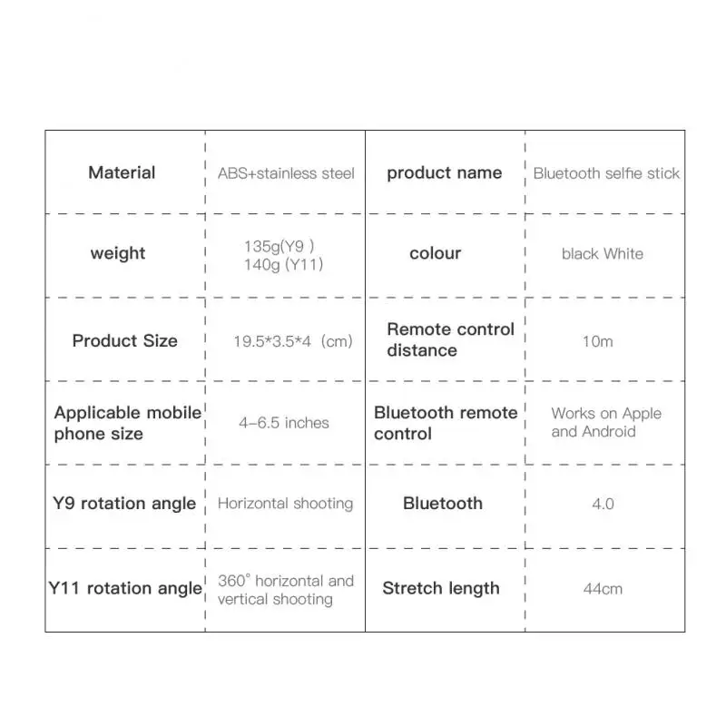 - Bluetooth, Bluetooth can be inside the selfie stick, good aesthetics
