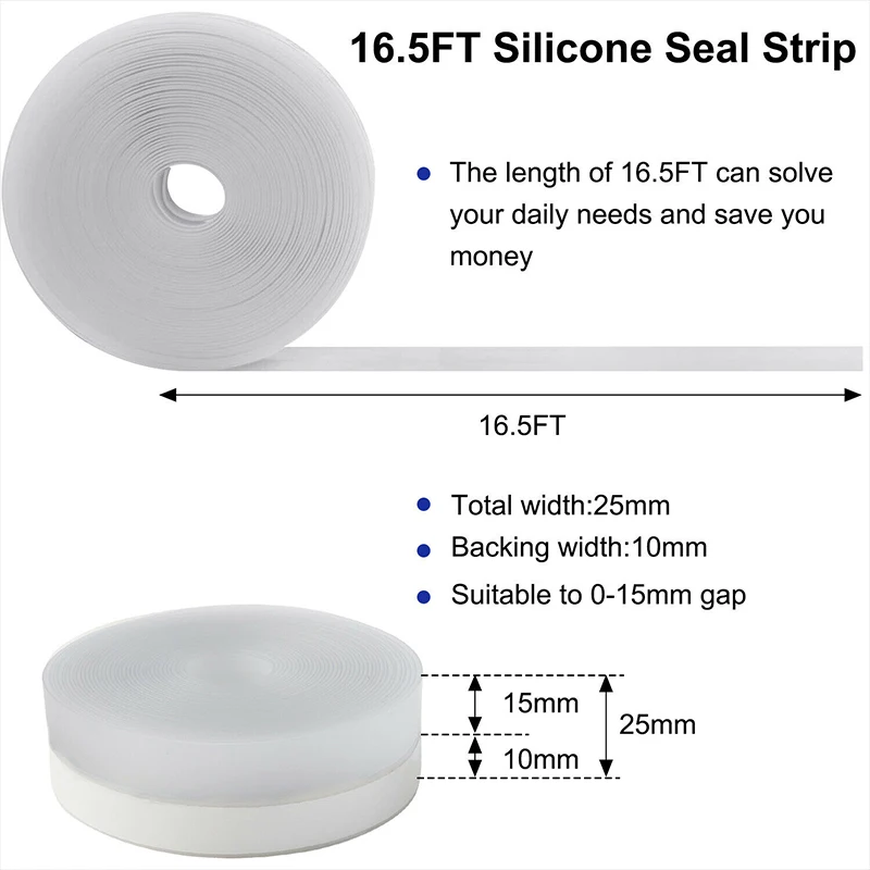 1. [5 м/16 футов силиконовая прокладка для уплотнения 25 мм/35 мм прозрачная/белая] -- этот силикон для зачистки погоды имеет 16 футов (5 метров), что достаточно долго для использования. Вы можете использовать силиконовую уплотнительную ленту в течение длительного времени, не приобретая ее часто. Между тем, вы будете более счастливы и просты в использовании!