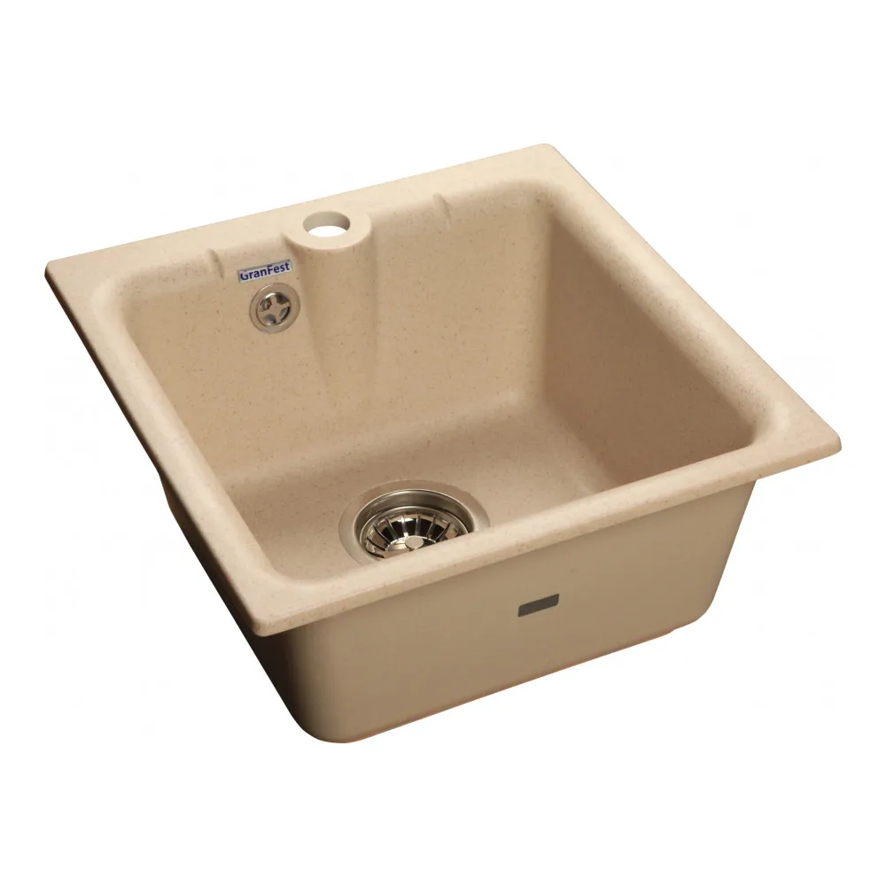 Дополнительная информация: Мойка для кухни GranFest Practic Gf-P420 бежевая изготовлена из искуственного мрамора.