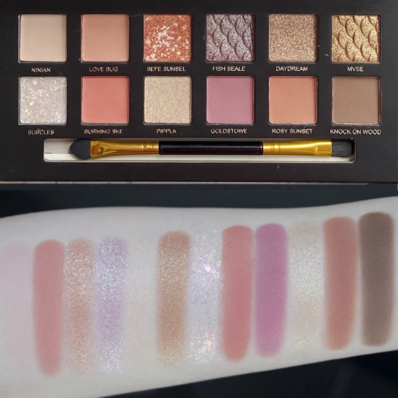 Палитра теней изготовлена из 12 цветов гладкого мерцания и матового порошка.