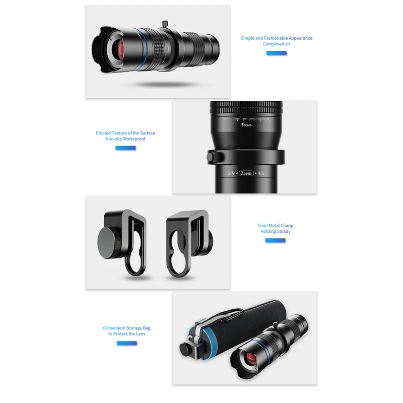Лучший зум телефото: телеобъектив 20-40X Zoom с новейшим дизайном, который имеет двойную регулировку, чтобы получить четкие фотографии от миль. Вращение кольца фокусировки позволяет регулировать фокусное расстояние, чтобы получить более четкие изображения; Вращение кольца масштабирования позволяет увеличить до 40x в режиме реального времени, когда вы снимаете от 20 метров до миль. Это хороший выбор для туризма, который помогает насладиться высококачественным техническим эффектом.