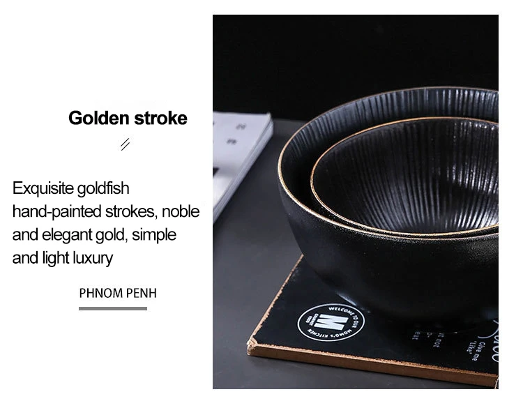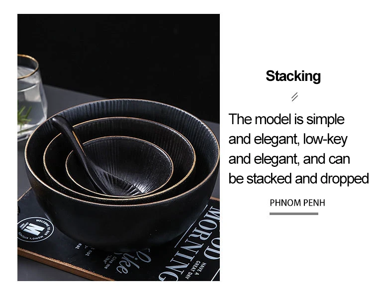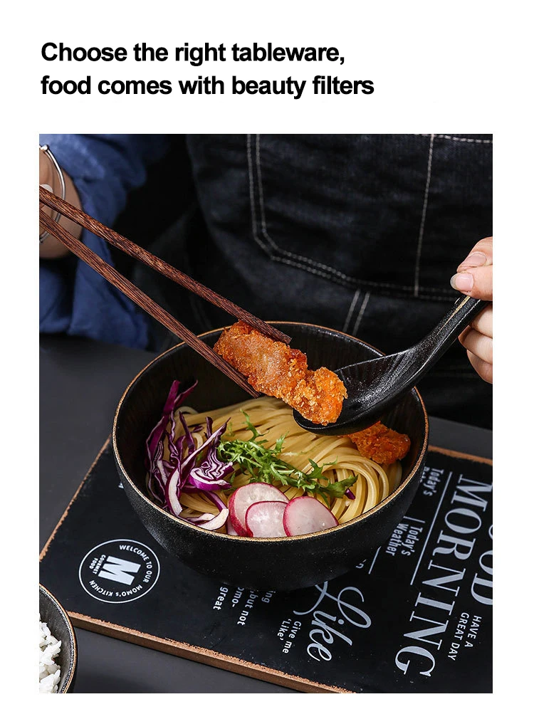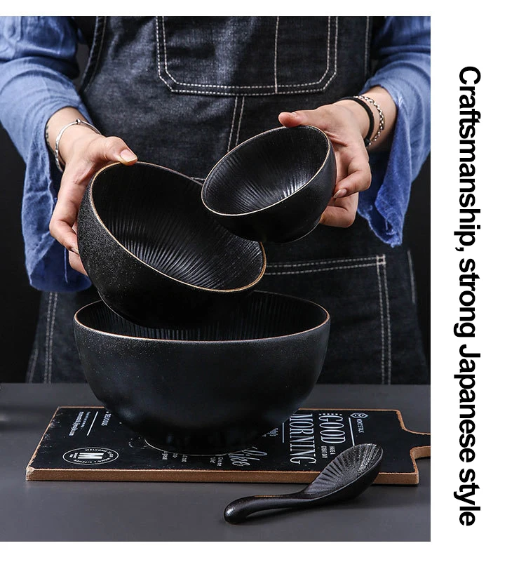 Японская керамическая черная миска ramen, салат из кокосовых фруктов, десертные миски, миски для смешивания риса, зерновых, суповых чаш, набор бытовой посуды