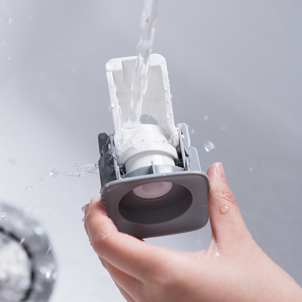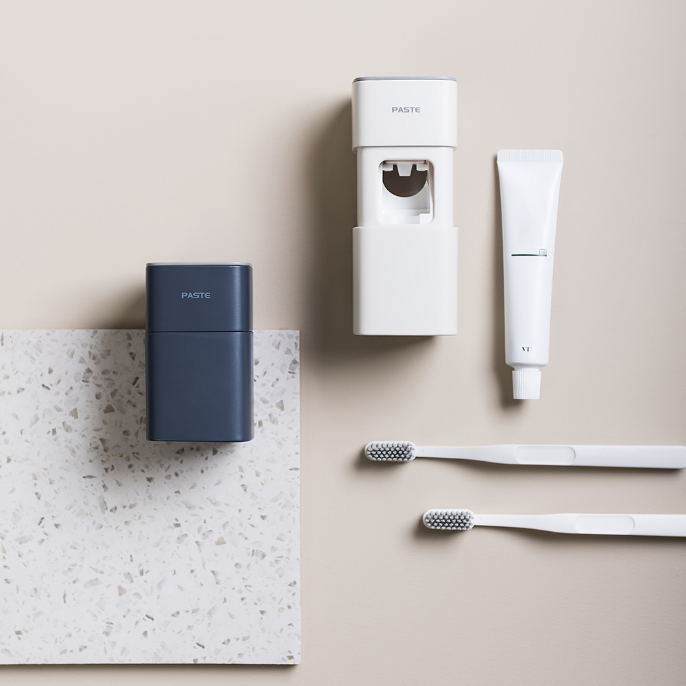 * 3. Нажмите и удерживайте кнопки разборки с обеих сторон продукта, вы можете легко отделить, легко очистить каждый угол дозатора зубной пасты.