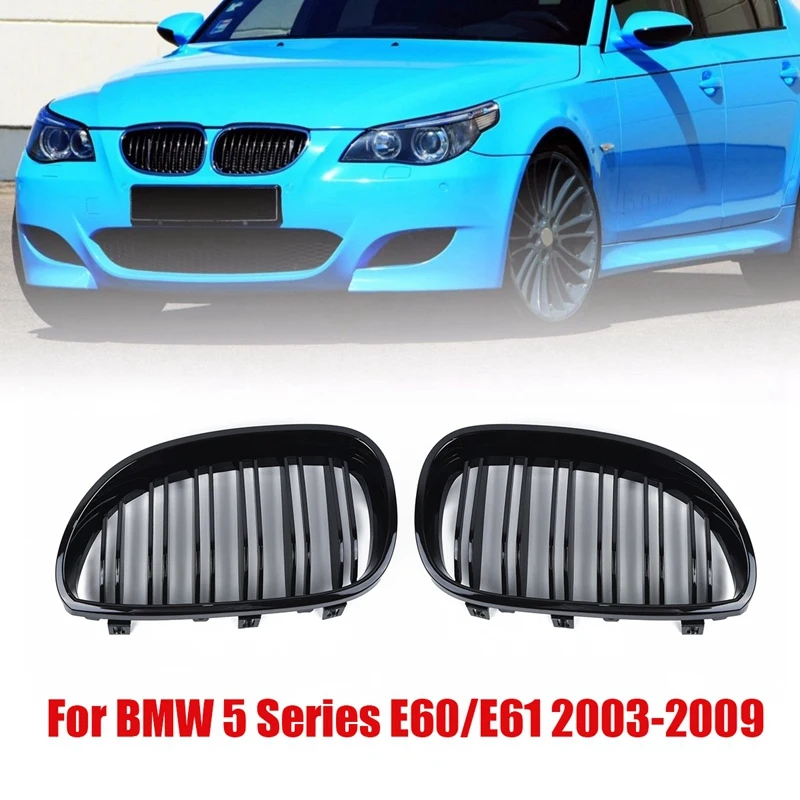 1 пара глянцевый черный Передний почечный гриль двойная планка двойная линия решетка для BMW E60 E61 5 серия 2003-2010 автомобильные аксессуары купе