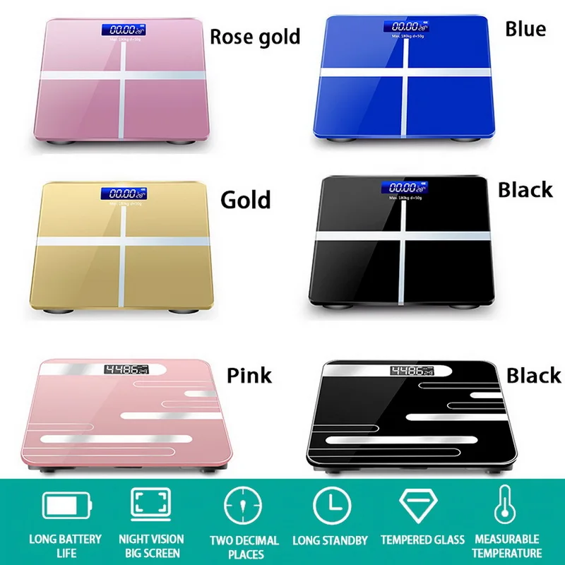 --18 функций измерения состава тела-Благодаря технологии анализа био-электрического сопротивления (BIA), Беспроводные цифровые весы не только показывают вес тела, но и синхронизируют данные с вашим приложением, в том числеЖир, вода, мышечная масса, ИМТ, костная масса, белок, скелетные мышцы и другие данные.Это помогает вам четко знать больше данных о вашем теле во времени и легко отслеживать на вашем телефоне.