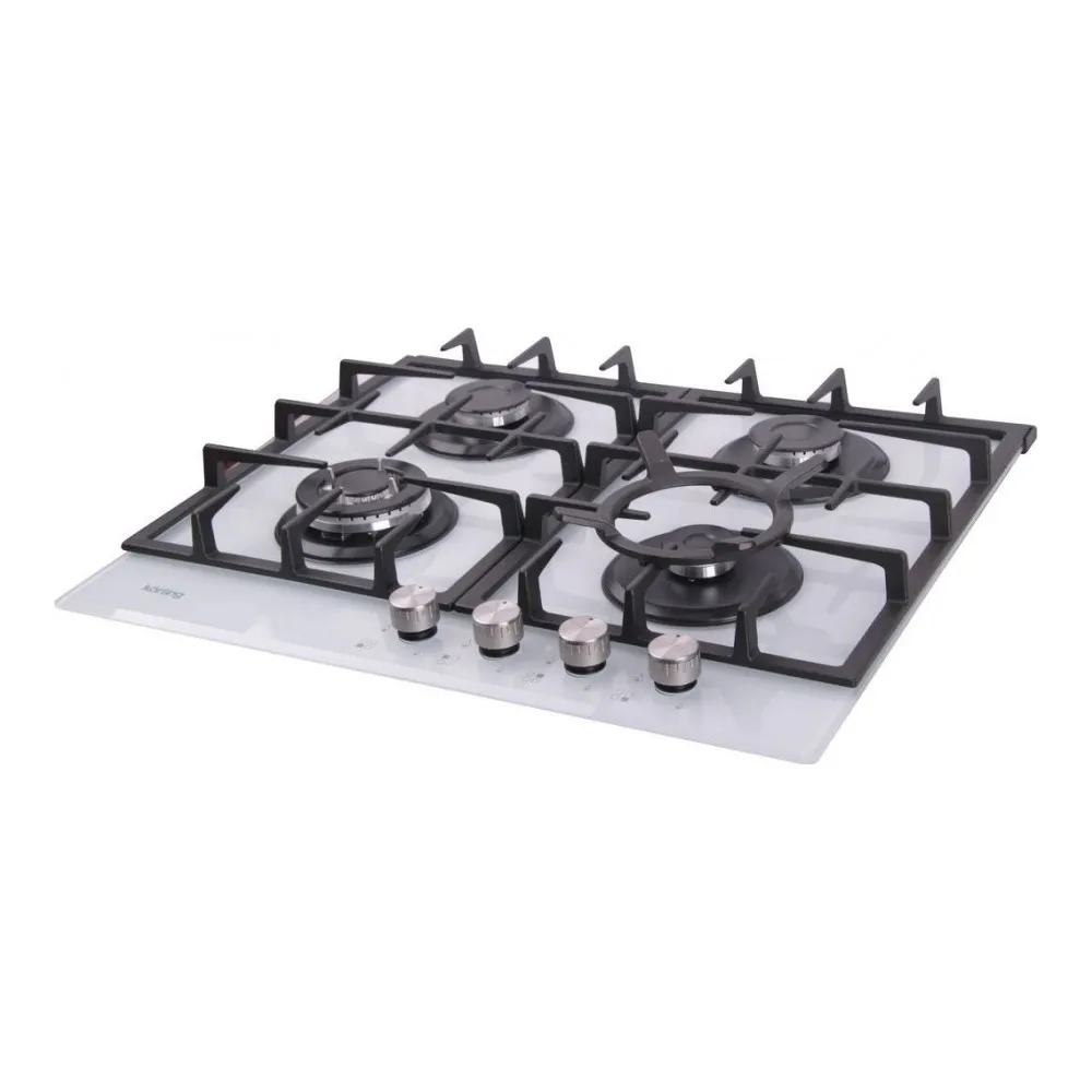 Gas-control of burners Yes Depth hob 52.2 cm Surface material Tempered glass Timer No. Diamond-shaped arrangement of burners No. Height hob 5 cm The control The front Warranty 12 months All burners 4 Width of the hob 59 cm Lattice material Cast iron Burner with triple flame 1. Color hob White Style Hi-Tech Design Domino No. Country of Origin Turkey The size of the niche for embedding & LPAR; shhg & rpar; 56.5 H49 cm Switches Swivel Electric lighter YesAPPEARANCE CODE