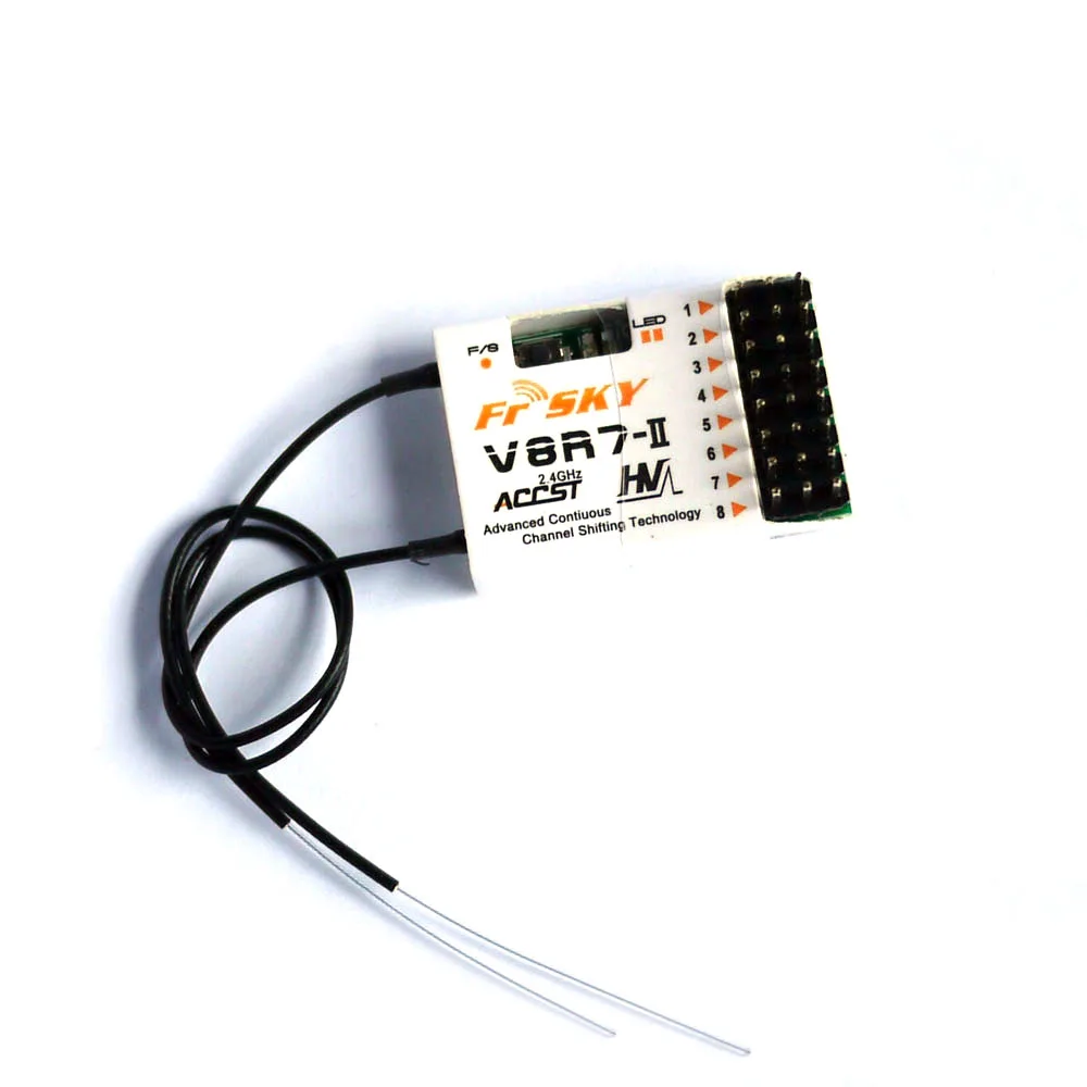 V8R7-II приемник будет работать нормально с вашим телеметрическим модулем без необходимости переключаться в режим телеметрии. Также совместим с телеметрическими модулями none, а также с модулем TARANIS TX и XJT. Характеристики: Передовая технология непрерывного переключения каналов (система ACCST), надежная Частотная гибкость. Легко связывается и очень быстро соединяется. Отличное время перезагрузки. Все каналы очень эффективны и просты в установке. Отзывчивый и прочный в производительности. Технические характеристики: Кол-во Каналы: 8 Размер: 33,5 мм x 22 мм x 12 мм Вес: 5,2g Рабочий диапазон напряжений: 3,0 V-16,0 V рабочий ток: 30mA @ 5V Совместимость: все 16 каналов reuire FrSky Taranis или модуль XJT. Для 8 каналов в режиме D8 вы можете использовать FrSky Taranis или XJT, DJT, DFT, DHT и DHT-U модули Что в коробке: 1 x V8R7-II 2 x короткий инструмент 1 x Руководство