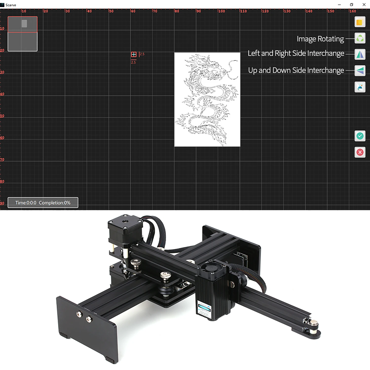 Лазерный гравер DK-4.0 специально разработан для DIY лазерной гравировальной машины с профессиональным программным обеспечением управления, даря вам Экстремальный портативный опыт.