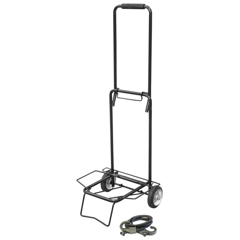 Тележка Материал: cталь, пластик, ПВХ. Цвет черный (порошковая окраска) Размер: 31*36*88 см Колеса металлические, диаметр - 100 мм Грузоподъемность: 25 кг Вес: 1,90 кг Притяжной ремень в комплекте Упаковка: П/э пакет с биркой