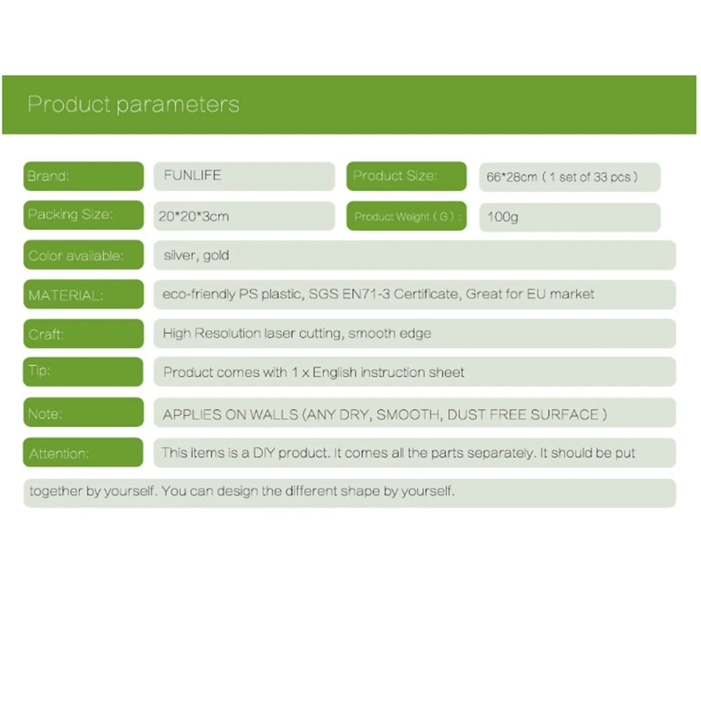 ❤Package includes: 33pcs mirror stickers; Material: PS plastic; Colour: Silver, Gold.