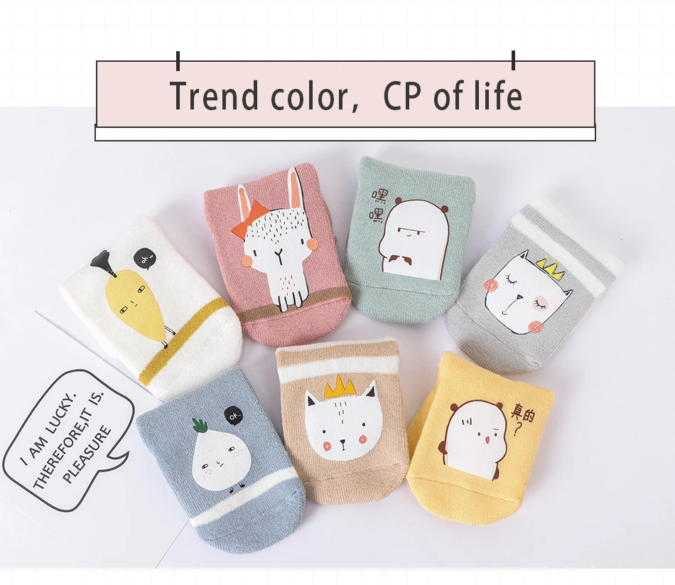 Подходящий Пол: нейтральный/мужской и женский Категория детских носков: обычные носки Детские носки Материал: чесаный хлопок Детские носки; Рисунок: жаккард Функции детских носков: дышащие, впитывающие влагу Высота голенища: средняя труба Толщина: толще Рисунок: рисунок с героями мультфильмов; Два цвета Подходящий сезон: зима, весна, осень Элементы: рисунок; Милый цвет Состав основной ткани: хлопок Основной состав ткани: 80,8 (%) Подходящий возраст: для новорожденных (0-1 лет, 80 см и ниже)